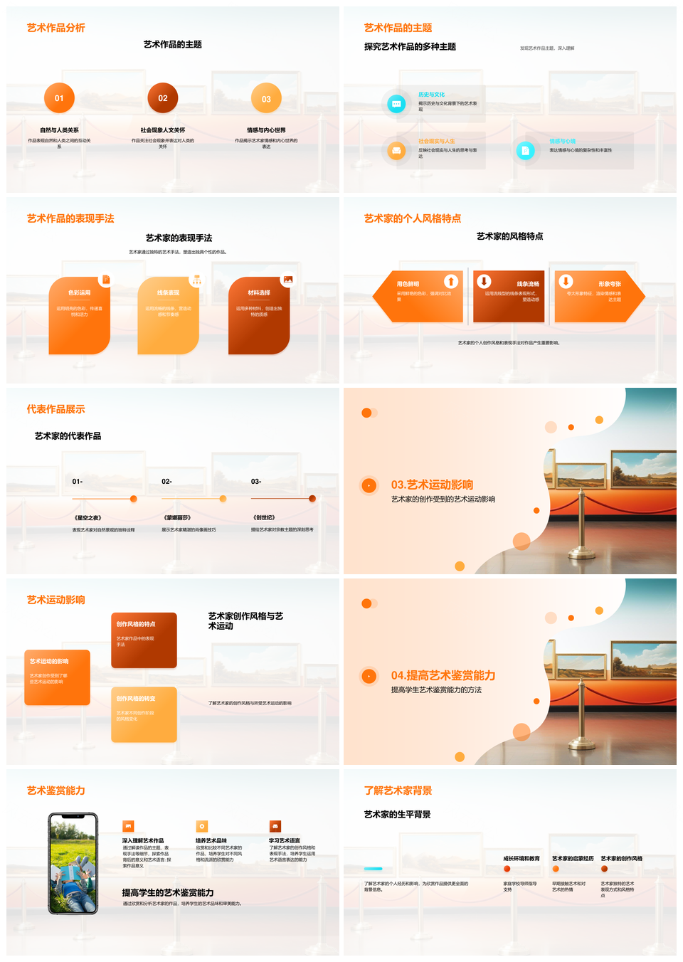 这是一张艺术家名作风格与创作主题赏析PPT模板,包含艺术家、名作、风格、创作、主题、赏析等主题内容,也可用作艺术家名作创作主题、艺术家名作主题赏析、名作风格创作主题、名作创作主题赏析、风格创作主题赏析、艺术家名作风格主题、艺术家名作风格、艺术家名作创作、艺术家名作主题、名作风格创作、名作创作主题、风格创作主题、创作主题赏析、艺术家名作、创作主题等PPT场景使用。