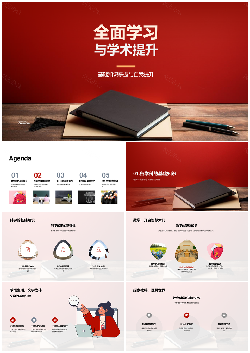全面学习科学数学文学基础提升学术能力PPT模板推荐