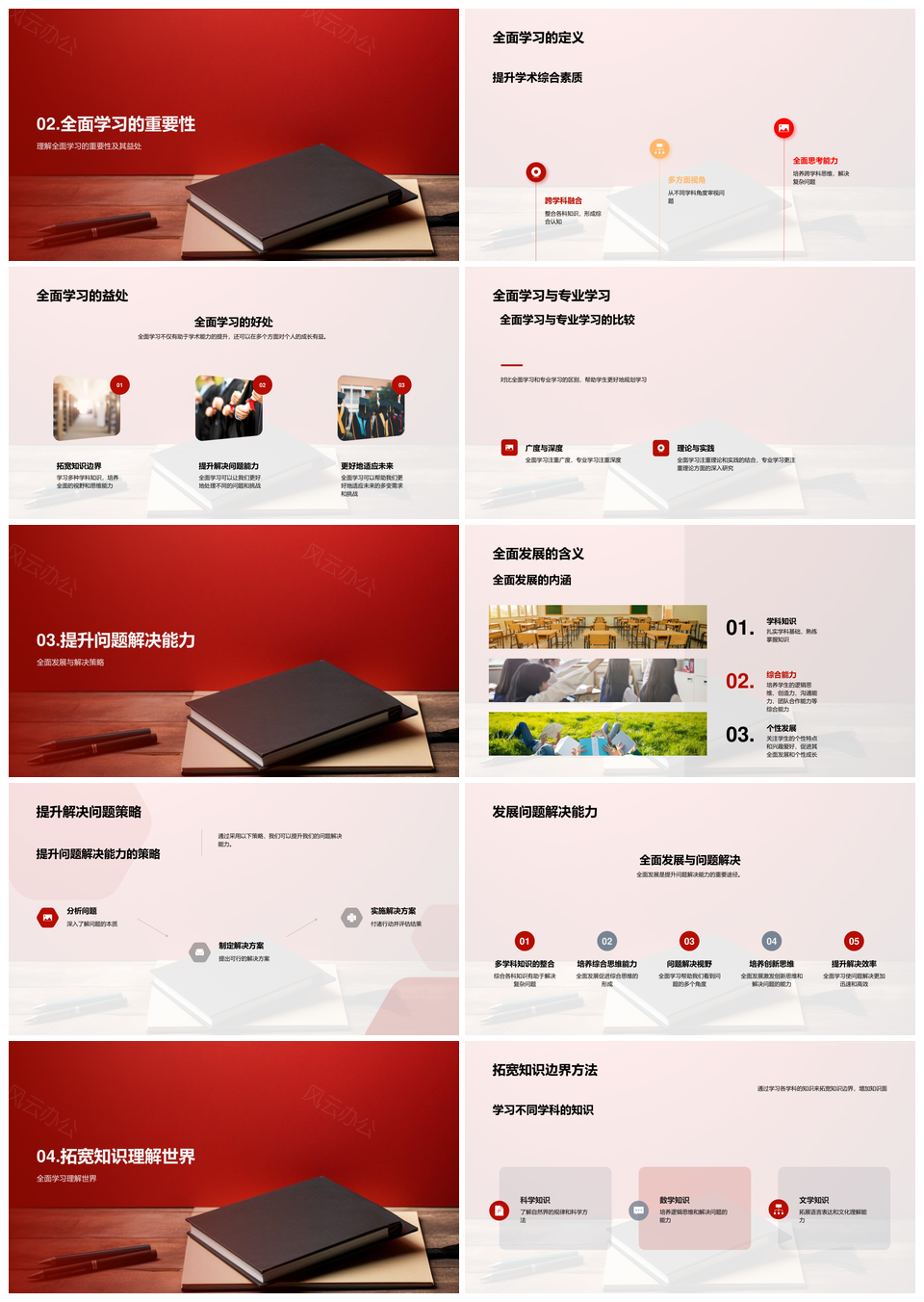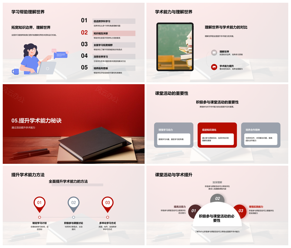 这是一张全面学习科学数学文学基础提升学术能力PPT模板,包含全面、学习、科学、数学、文学、基础、提升、学术、能力等主题内容,也可用作全面学习科学数学、学习科学数学文学、科学数学文学基础、数学文学基础提升、文学基础提升学术、基础提升学术能力、全面学习科学、学习科学数学、科学数学文学、数学文学基础、文学基础提升、基础提升学术、提升学术能力、全面学习、学习科学等PPT场景使用。 风云办公提供的全面学习科学数学文学基础提升学术能力PPT模板,下载格式为pptx,一共24页,作品中文字及图均可以修改和编辑,图片更改请在作品中右键图片并更换,文字修改请直接点击文字进行修改。