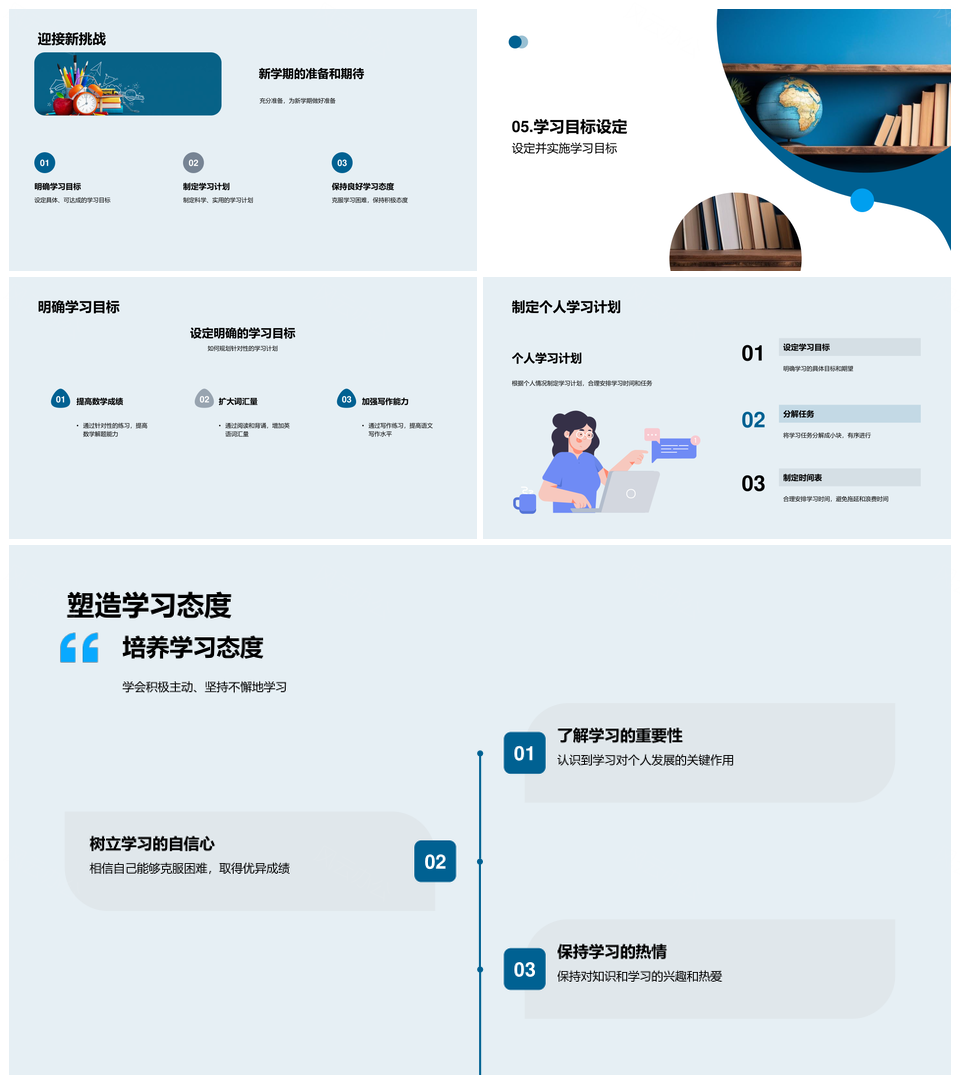 风云办公提供的四年级学习新征程规划目标策略总结PPT模板,下载格式为pptx,一共23页,作品中文字及图均可以修改和编辑,图片更改请在作品中右键图片并更换,文字修改请直接点击文字进行修改。