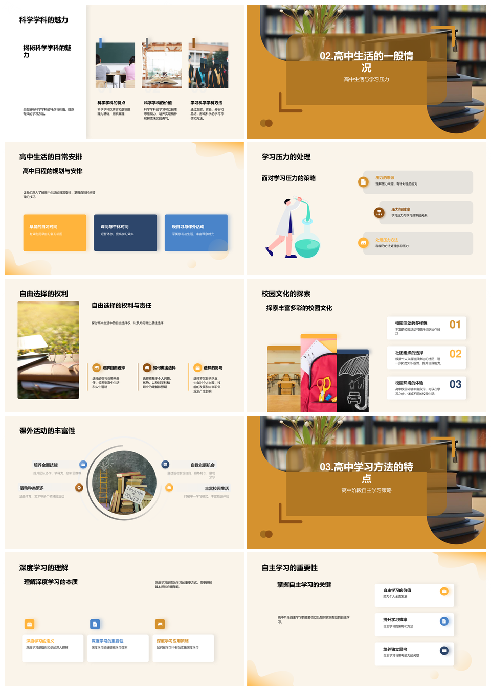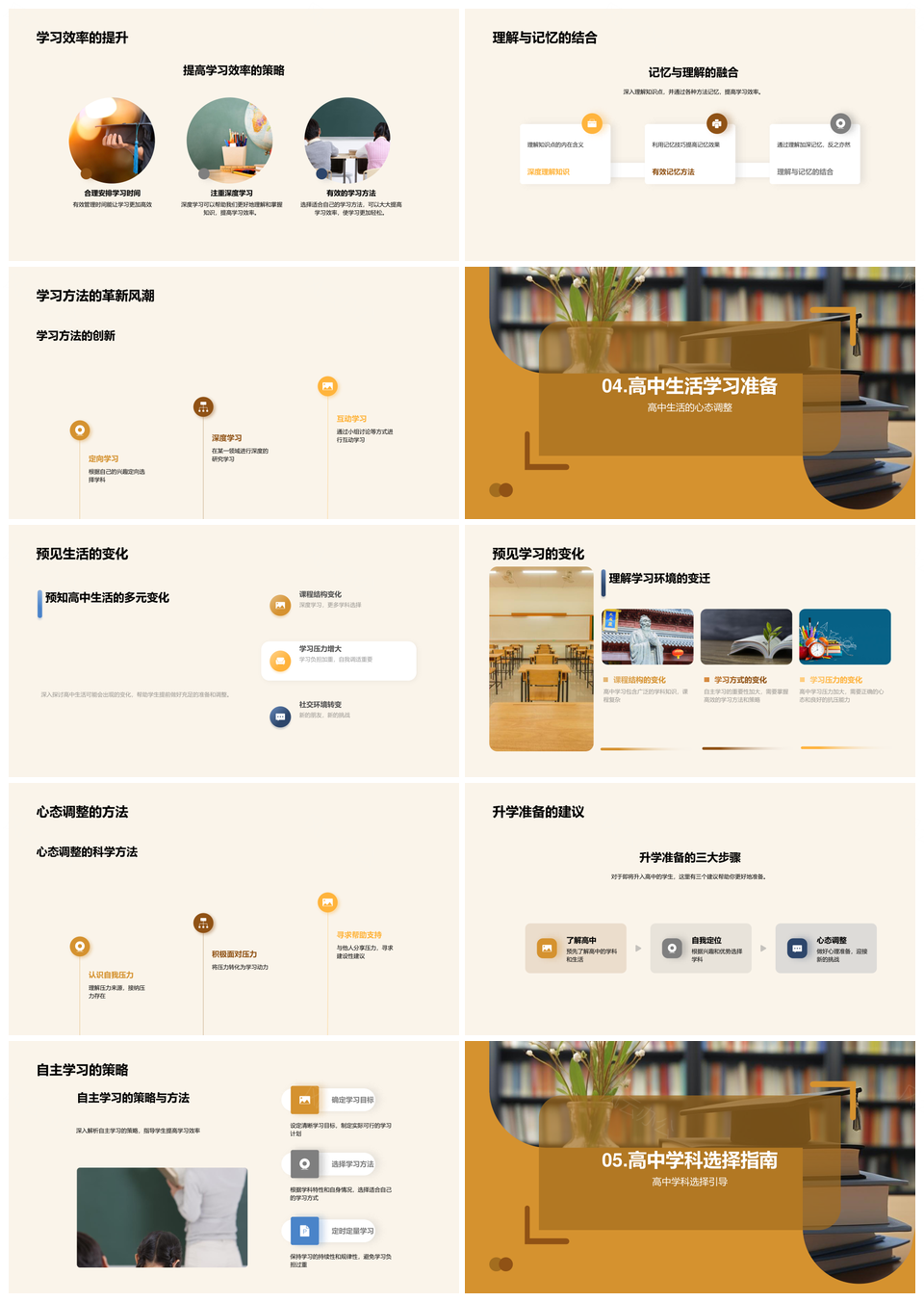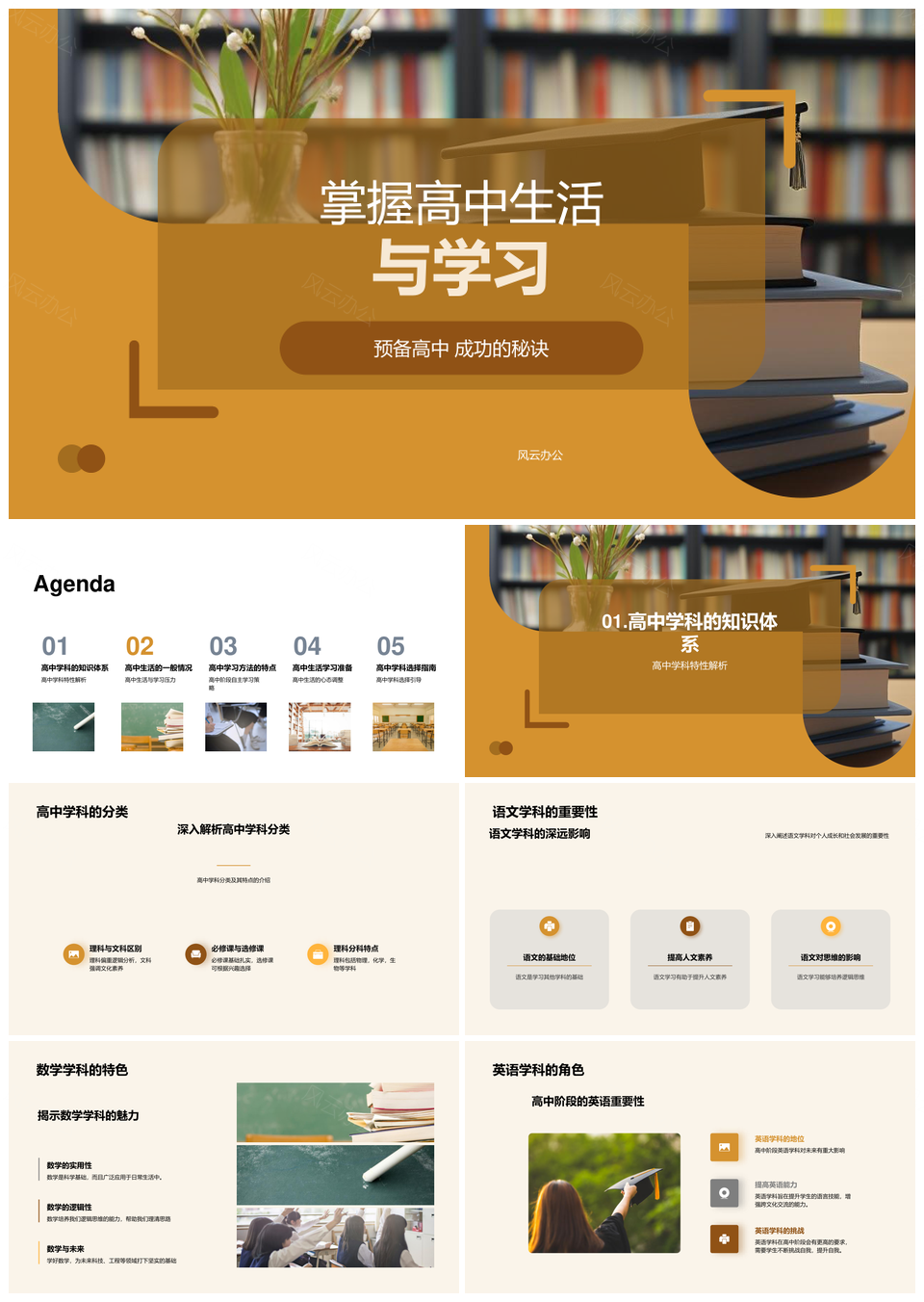 风云办公提供的预备高中生活学习与自主校楼管理PPT模板,下载格式为pptx,一共33页,作品中文字及图均可以修改和编辑,图片更改请在作品中右键图片并更换,文字修改请直接点击文字进行修改。