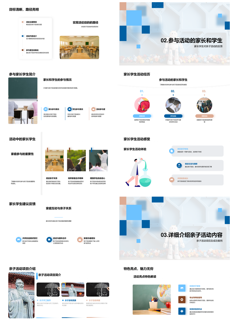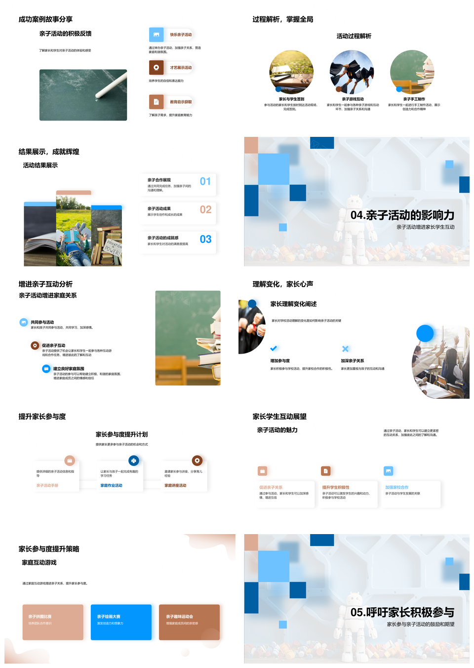 家长学生互动提升亲子活动主题参与度反馈PPT模板推荐