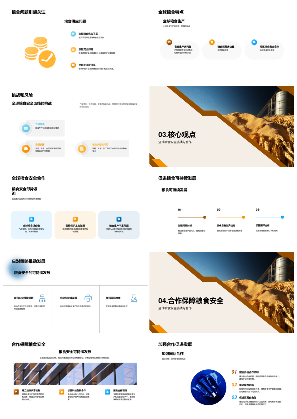 风云办公提供的全球粮食安全挑战困境与政府合作应对PPT模板,下载格式为pptx,一共19页,作品中文字及图均可以修改和编辑,图片更改请在作品中右键图片并更换,文字修改请直接点击文字进行修改。