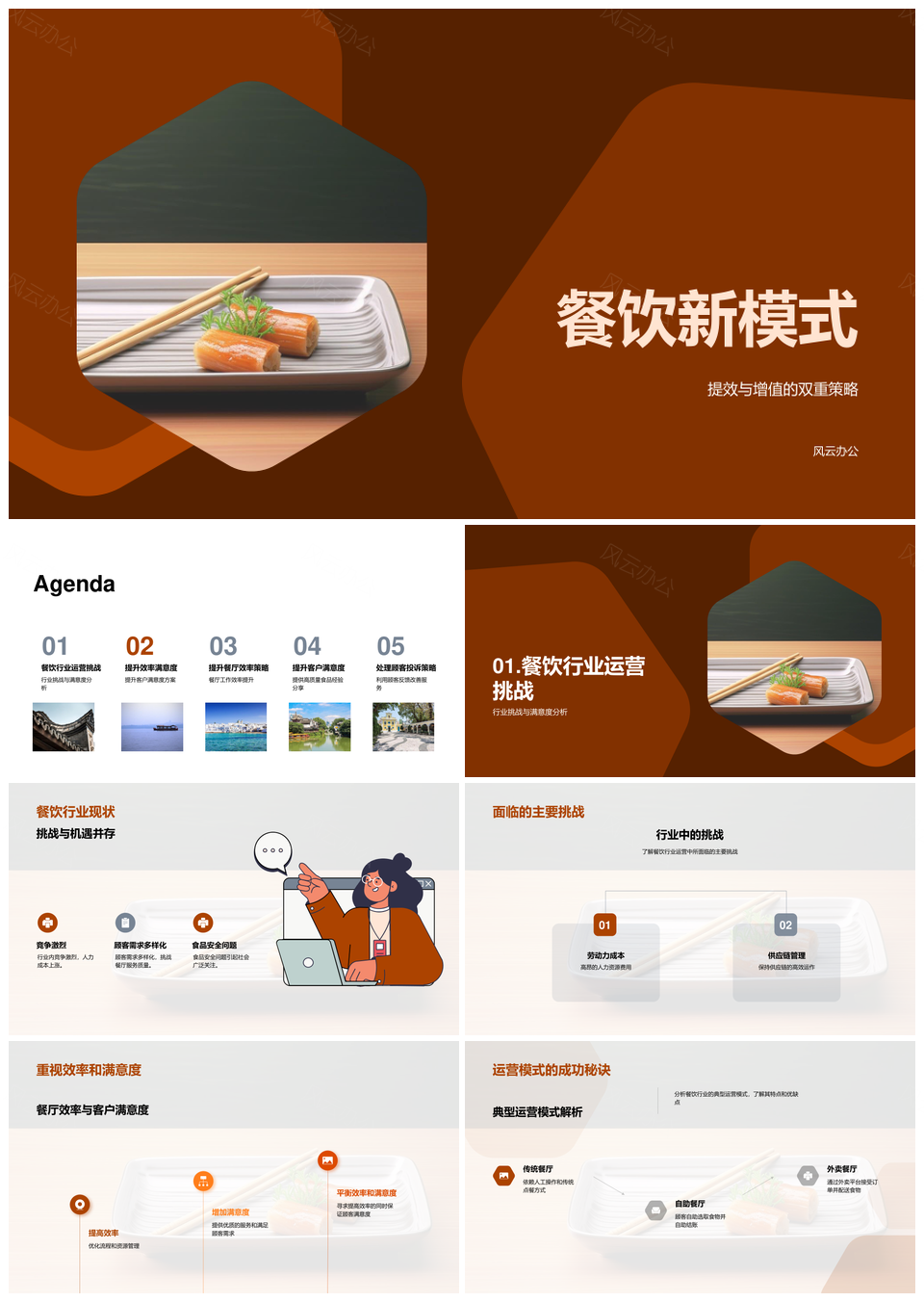风云办公提供的餐饮科技提效优服高质新模式PPT模板,下载格式为pptx,一共28页,作品中文字及图均可以修改和编辑,图片更改请在作品中右键图片并更换,文字修改请直接点击文字进行修改。
