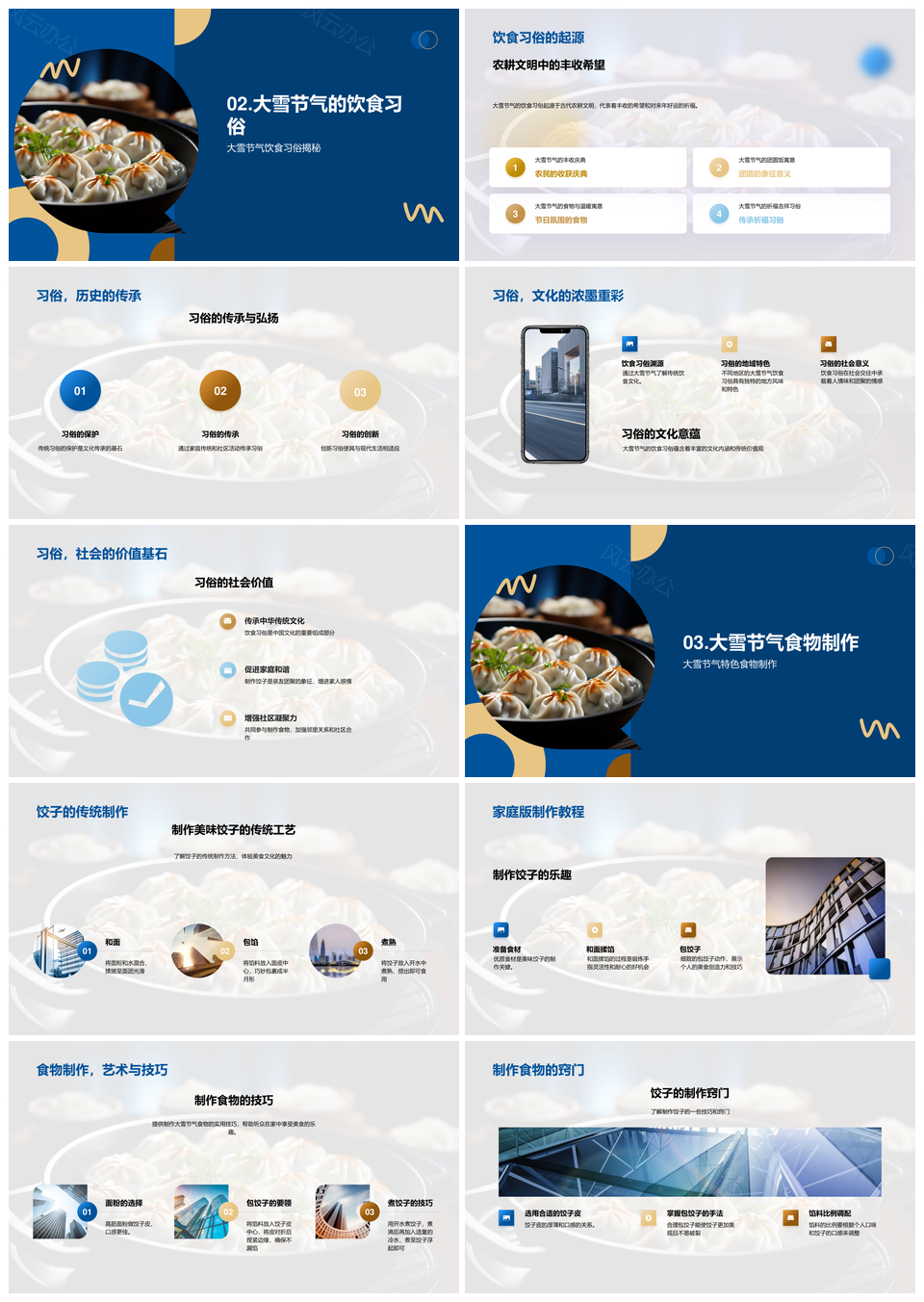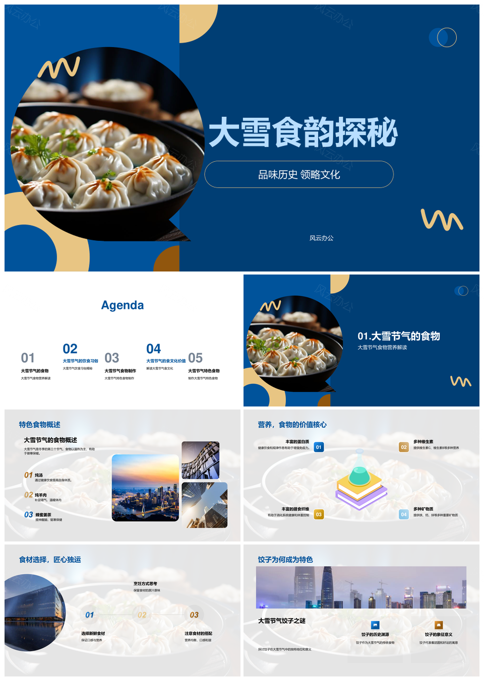 风云办公提供的大雪食俗饺子营养食材与制作技巧PPT模板,下载格式为pptx,一共28页,作品中文字及图均可以修改和编辑,图片更改请在作品中右键图片并更换,文字修改请直接点击文字进行修改。