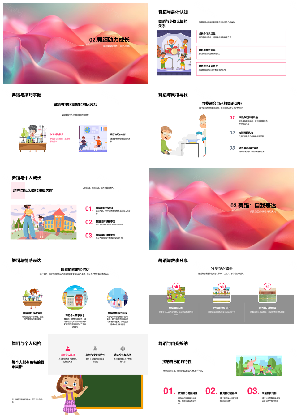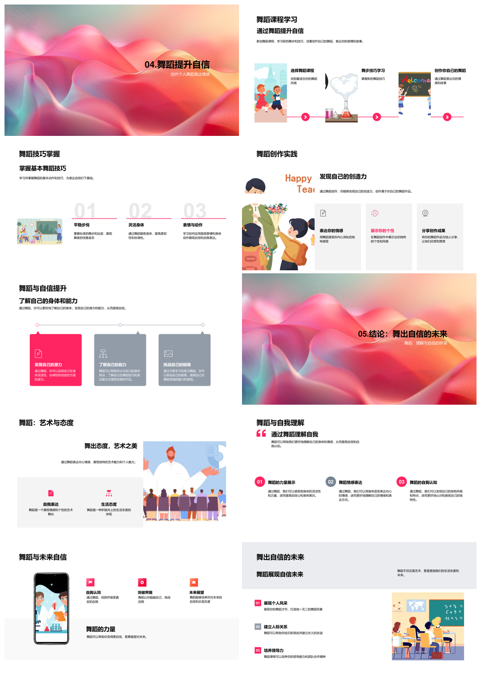 舞蹈提升自信舞技风格情感创作自赏身体认知PPT模板推荐