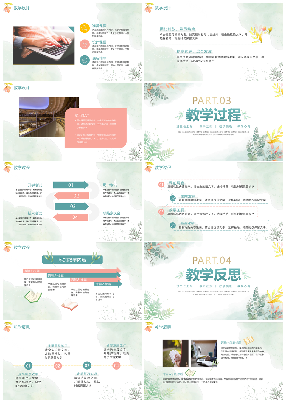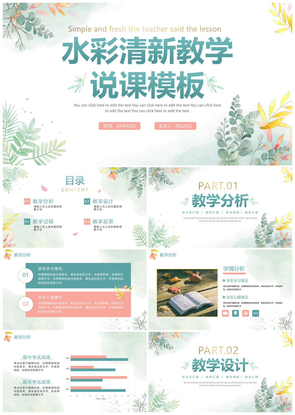 风云办公提供的清新简约水彩插画绿植教师说课课件PPT模板,下载格式为pptx,一共19页,作品中文字及图均可以修改和编辑,图片更改请在作品中右键图片并更换,文字修改请直接点击文字进行修改。