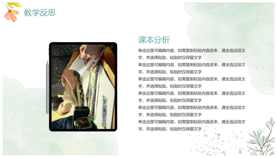 这是一张清新简约水彩插画绿植教师说课课件PPT模板,包含清新、简约、水彩、插画、绿植、教师、说课、课件等主题内容,也可用作清新简约水彩插画、简约水彩插画绿植、水彩插画绿植教师、插画绿植教师说课、绿植教师说课课件、清新简约水彩插画绿植、简约水彩插画绿植教师、水彩插画绿植教师说课、插画绿植教师说课课件、清新简约水彩绿植教师、简约水彩绿植教师说课、清新简约插画绿植教师、清新水彩插画绿植教师、清新简约水彩插画绿植教师说课课件、清新简约水彩绿植教师说课等PPT场景使用。
