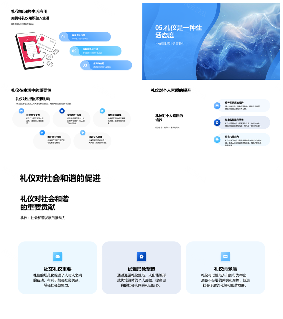 这是一张礼仪知识学习生活实践应用PPT模板,包含礼仪知识、学习、生活、实践、应用等主题内容,也可用作礼仪知识学习生活实践应用、礼仪知识学习生活、知识学习生活实践应用、知识学习生活实践、学习生活实践应用、礼仪知识学习、知识学习生活、学习生活实践、生活实践应用、礼仪知识、知识学习、学习生活、生活实践、实践应用、知识实践等PPT场景使用。