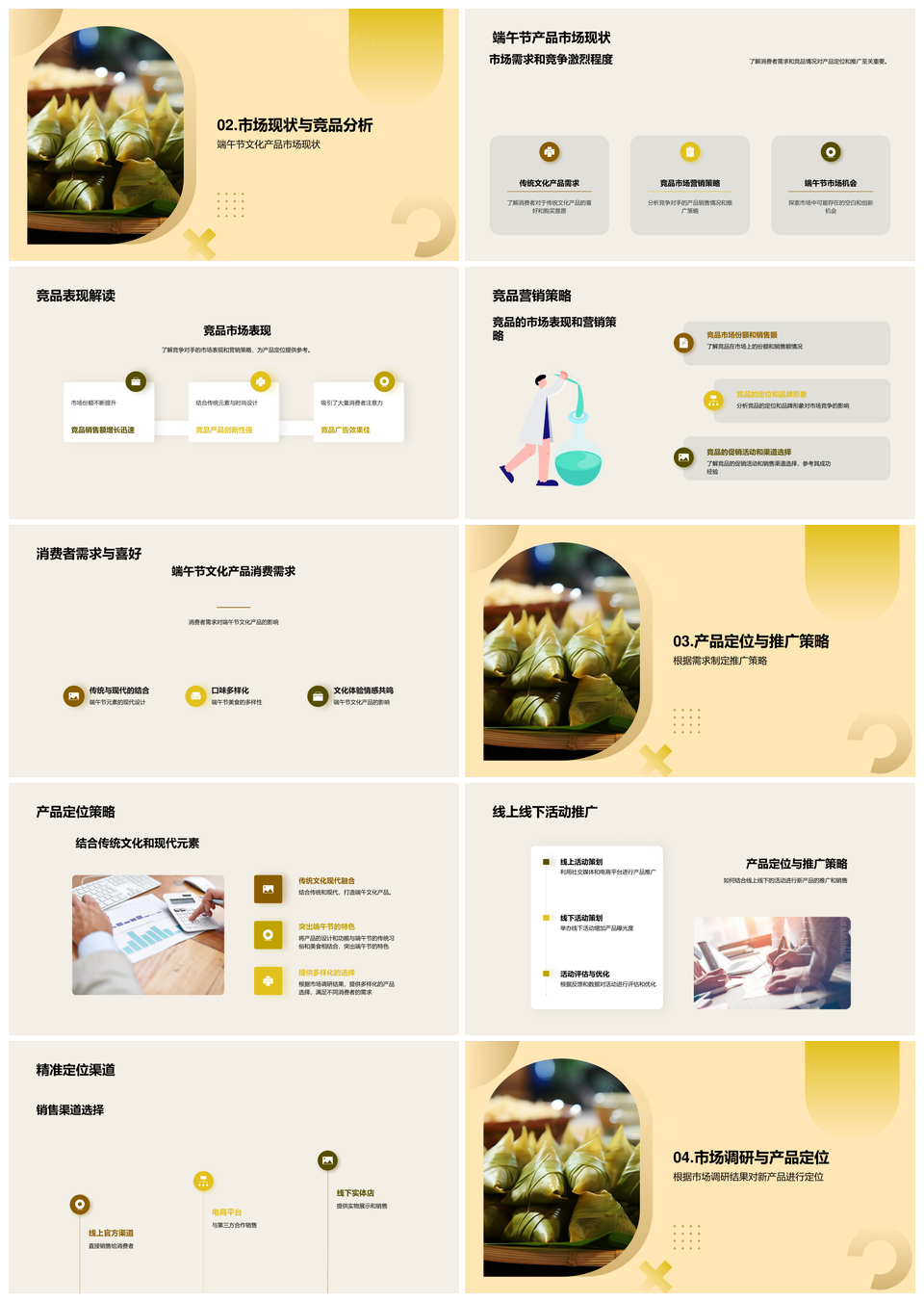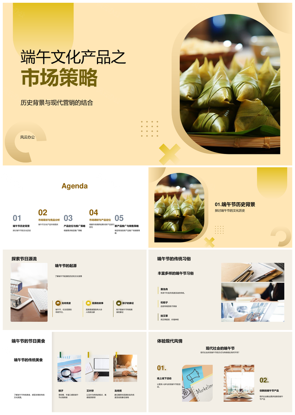 风云办公提供的端午龙舟文化产品市场策略分析PPT模板,下载格式为pptx,一共25页,作品中文字及图均可以修改和编辑,图片更改请在作品中右键图片并更换,文字修改请直接点击文字进行修改。