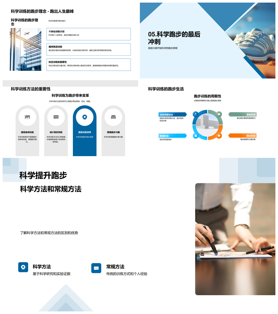 这是一张科学跑步训练技巧步态呼吸饮食步频跑姿跑鞋PPT模板,包含跑步、训练、技巧、步态、呼吸、饮食、步频、跑姿、跑鞋等主题内容,也可用作科学跑步训练技巧步态呼吸、科学跑步训练技巧步态、科学跑步训练技巧呼吸、科学跑步训练步态呼吸、跑步训练技巧步态呼吸饮食、跑步训练技巧步态呼吸、训练技巧步态呼吸饮食、技巧步态呼吸饮食步频、步态呼吸饮食步频跑姿、呼吸饮食步频跑姿跑鞋、科学跑步训练技巧、科学跑步训练步态、科学跑步技巧呼吸、跑步训练技巧步态、训练技巧步态呼吸、技巧步态呼吸饮食、步态呼吸饮食步频、呼吸饮食步频跑姿、饮食步频跑姿跑鞋、科学跑步训练、科学训练技巧、跑步训练技巧、训练技巧步态、技巧步态呼吸、步态呼吸饮食、呼吸饮食步频、饮食步频跑姿、步频跑姿跑鞋、科学跑步、跑步训练、训练技巧、技巧步态、步态呼吸、呼吸饮食、饮食步频、步频跑姿、跑姿跑鞋等PPT场景使用。 风云办公提供的科学跑步训练技巧步态呼吸饮食步频跑姿跑鞋PPT模板,下载格式为pptx,一共23页,作品中文字及图均可以修改和编辑,图片更改请在作品中右键图片并更换,文字修改请直接点击文字进行修改。