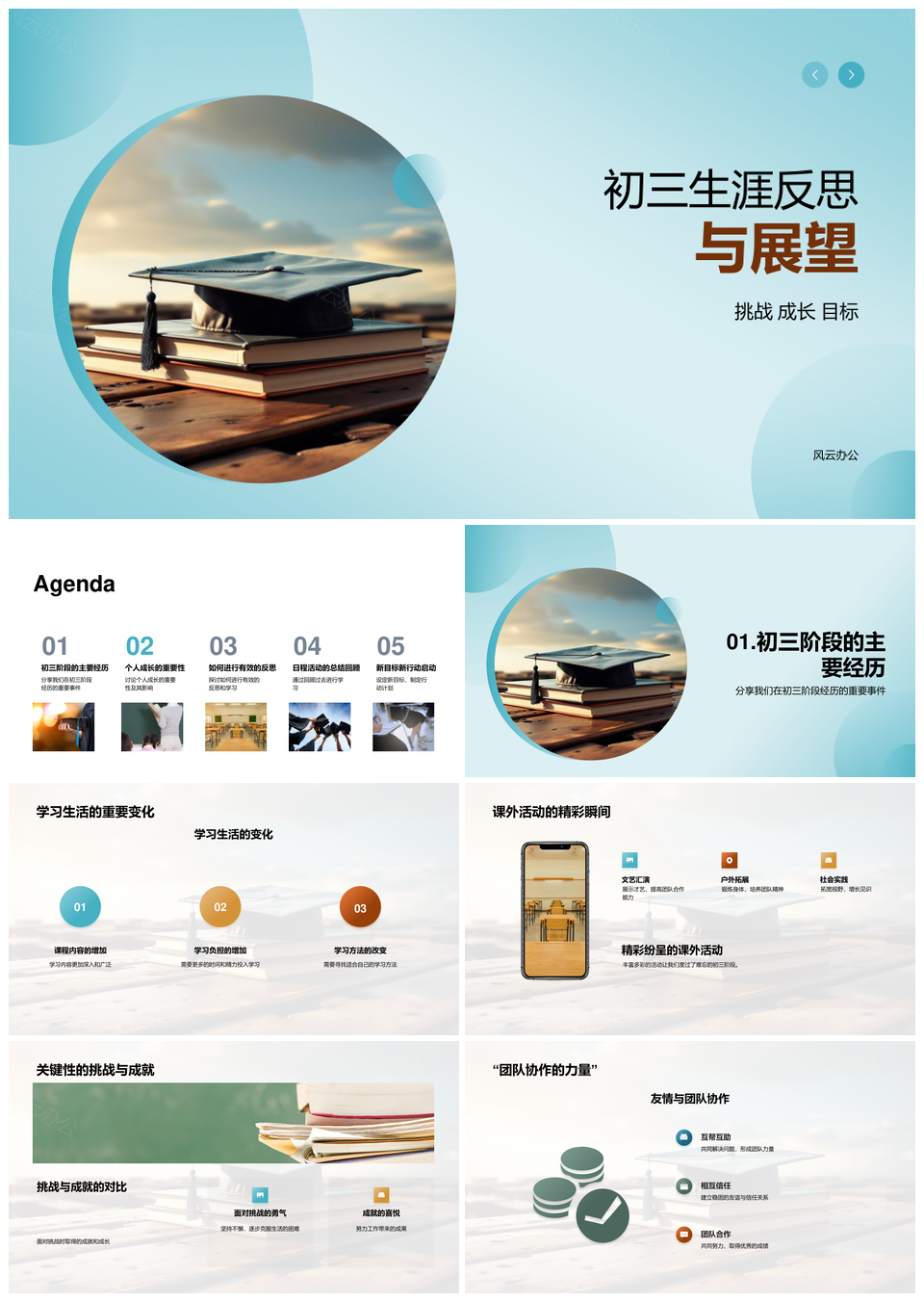 风云办公提供的初三生涯挑战成长学业活动反思展望PPT模板,下载格式为pptx,一共28页,作品中文字及图均可以修改和编辑,图片更改请在作品中右键图片并更换,文字修改请直接点击文字进行修改。