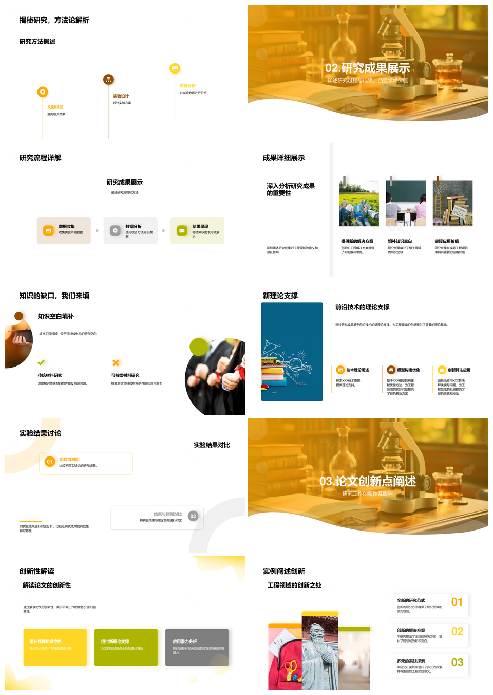 博士研究成果学术答辩方法创新实践理论框架实验设计PPT模板
