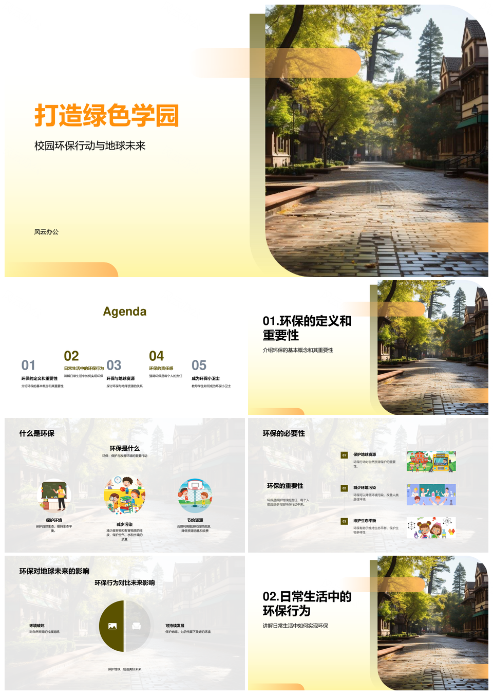 风云办公提供的绿色学园环保教育共建地球未来PPT模板,下载格式为pptx,一共24页,作品中文字及图均可以修改和编辑,图片更改请在作品中右键图片并更换,文字修改请直接点击文字进行修改。