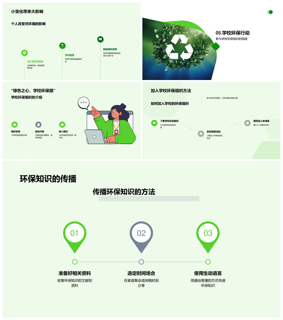 校园环保教育实践推广分类回收节约应对全球环境PPT模板