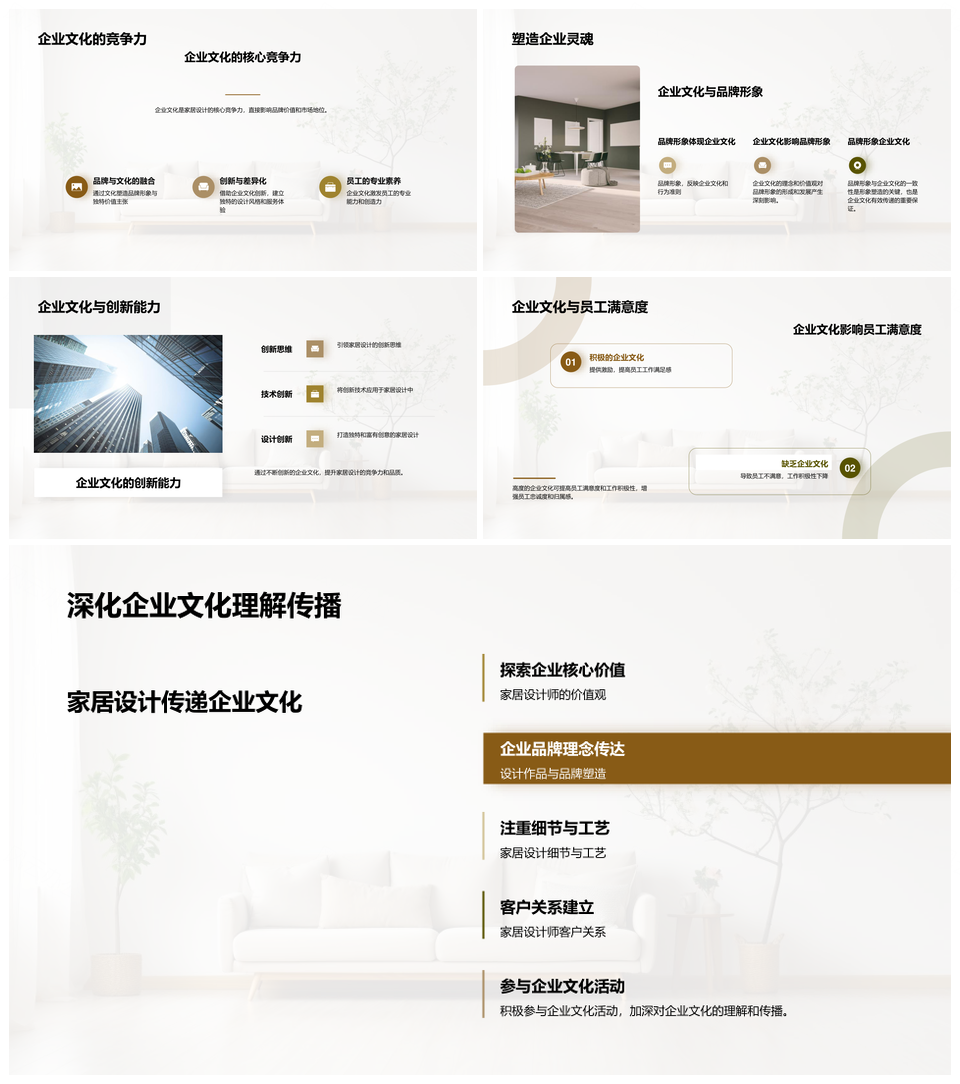 这是一张家居企业文化设计理念风格品质竞争力PPT模板,包含家居企业、文化、设计、理念、风格、品质、竞争力等主题内容,也可用作家居企业文化设计理念、企业文化设计理念风格、设计理念风格品质、理念风格品质竞争力、家居企业文化设计、企业文化设计理念、文化设计理念风格、设计理念风格品质、理念风格品质、风格品质竞争力、家居企业文化、企业文化设计、文化设计理念、设计理念风格、理念风格品质等PPT场景使用。