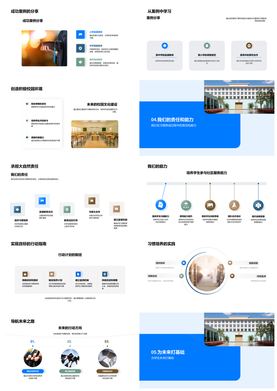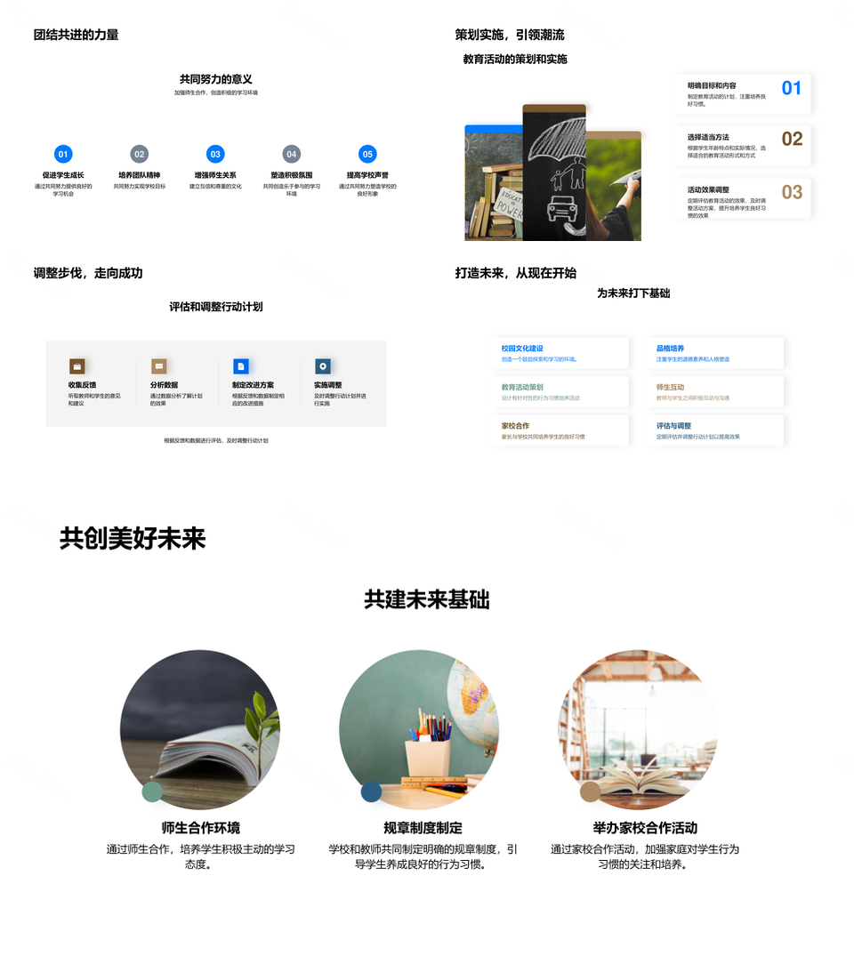 这是一张校园文化培育良习与品格教育PPT模板,包含校园文化、培育、良习、品格教育等主题内容,也可用作校园文化培育良习、文化培育良习品格、培育良习品格教育、校园文化培育、文化培育良习、培育良习品格、良习品格教育、校园文化、文化培育、培育良习、良习品格、品格教育、校园培育、培育品格、良习教育等PPT场景使用。 风云办公提供的校园文化培育良习与品格教育PPT模板,下载格式为pptx,一共33页,作品中文字及图均可以修改和编辑,图片更改请在作品中右键图片并更换,文字修改请直接点击文字进行修改。