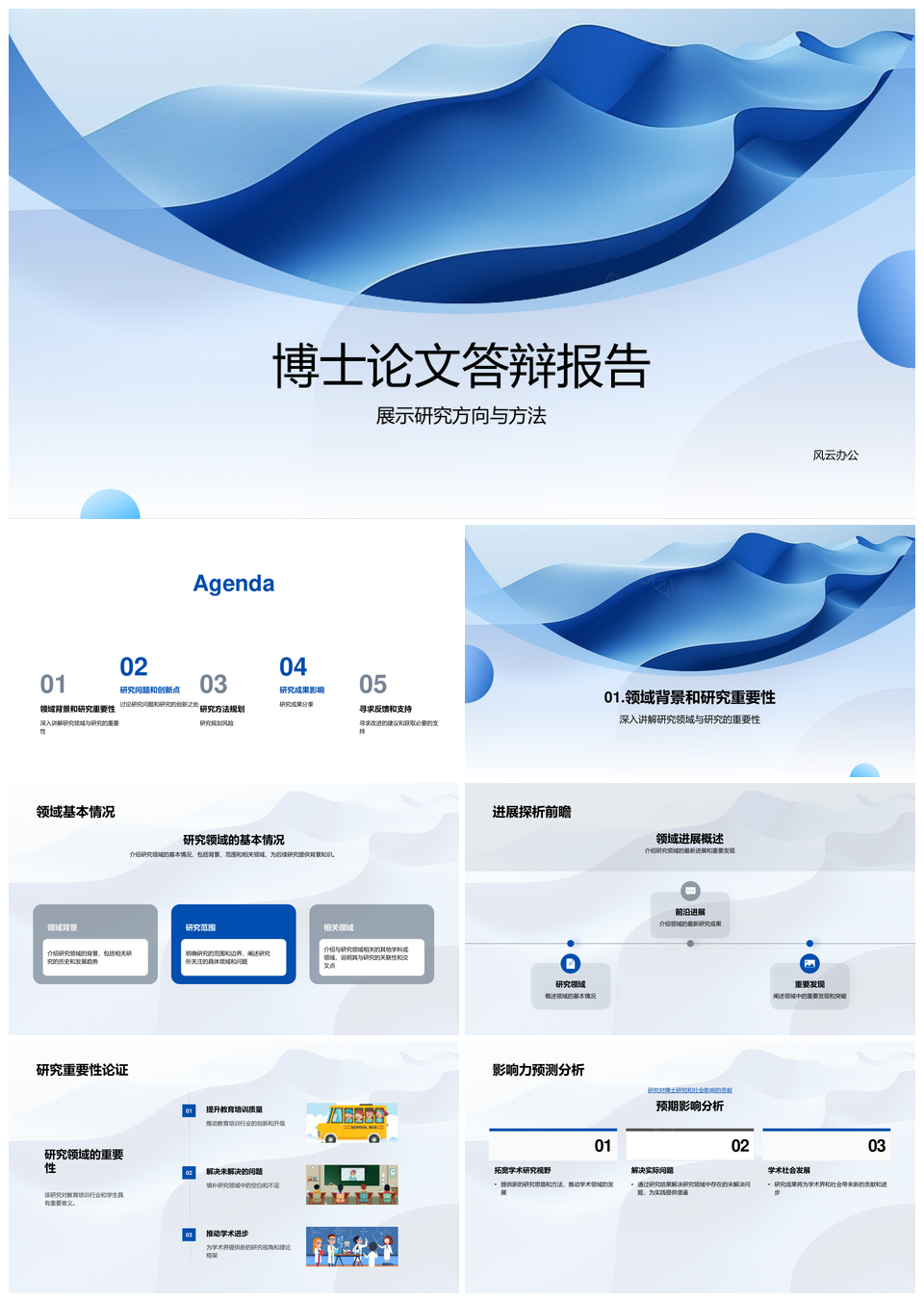 风云办公提供的博士答辩研究领域方法创新影响规划PPT模板,下载格式为pptx,一共29页,作品中文字及图均可以修改和编辑,图片更改请在作品中右键图片并更换,文字修改请直接点击文字进行修改。