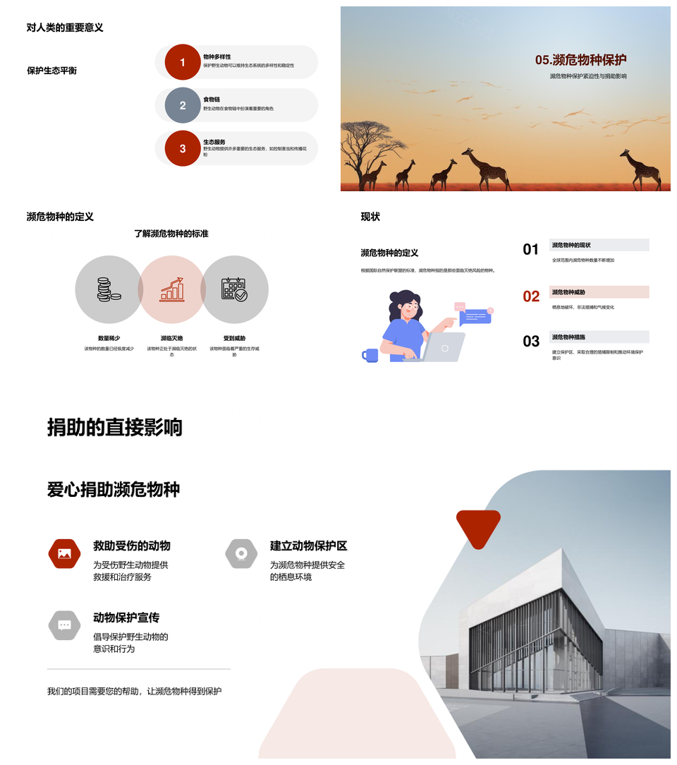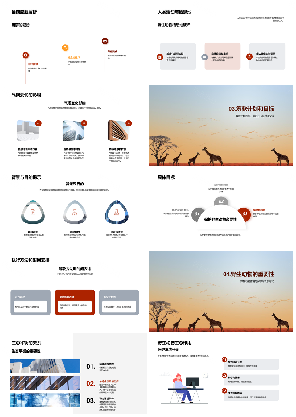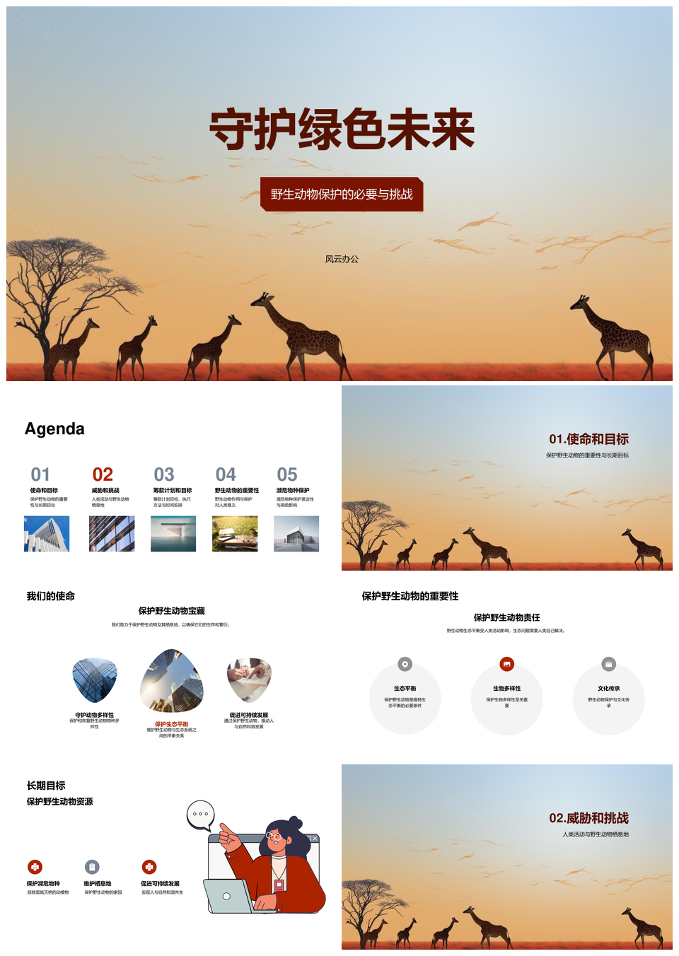 风云办公提供的野生动物保护项目筹款守护资源未来PPT模板,下载格式为pptx,一共23页,作品中文字及图均可以修改和编辑,图片更改请在作品中右键图片并更换,文字修改请直接点击文字进行修改。