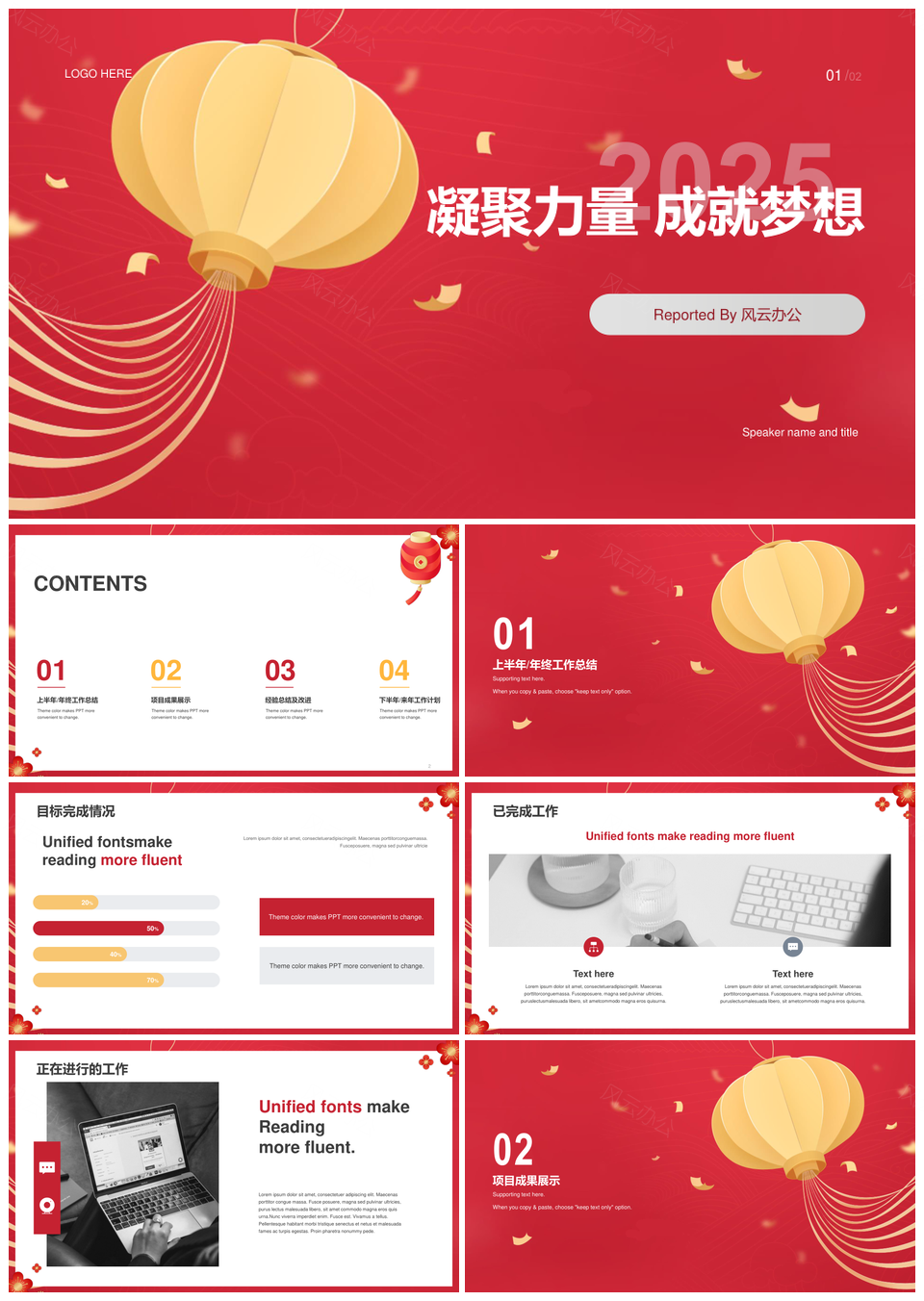 风云办公提供的2025红色节日节庆灯笼工作总结PPT模板,下载格式为pptx,一共15页,作品中文字及图均可以修改和编辑,图片更改请在作品中右键图片并更换,文字修改请直接点击文字进行修改。
