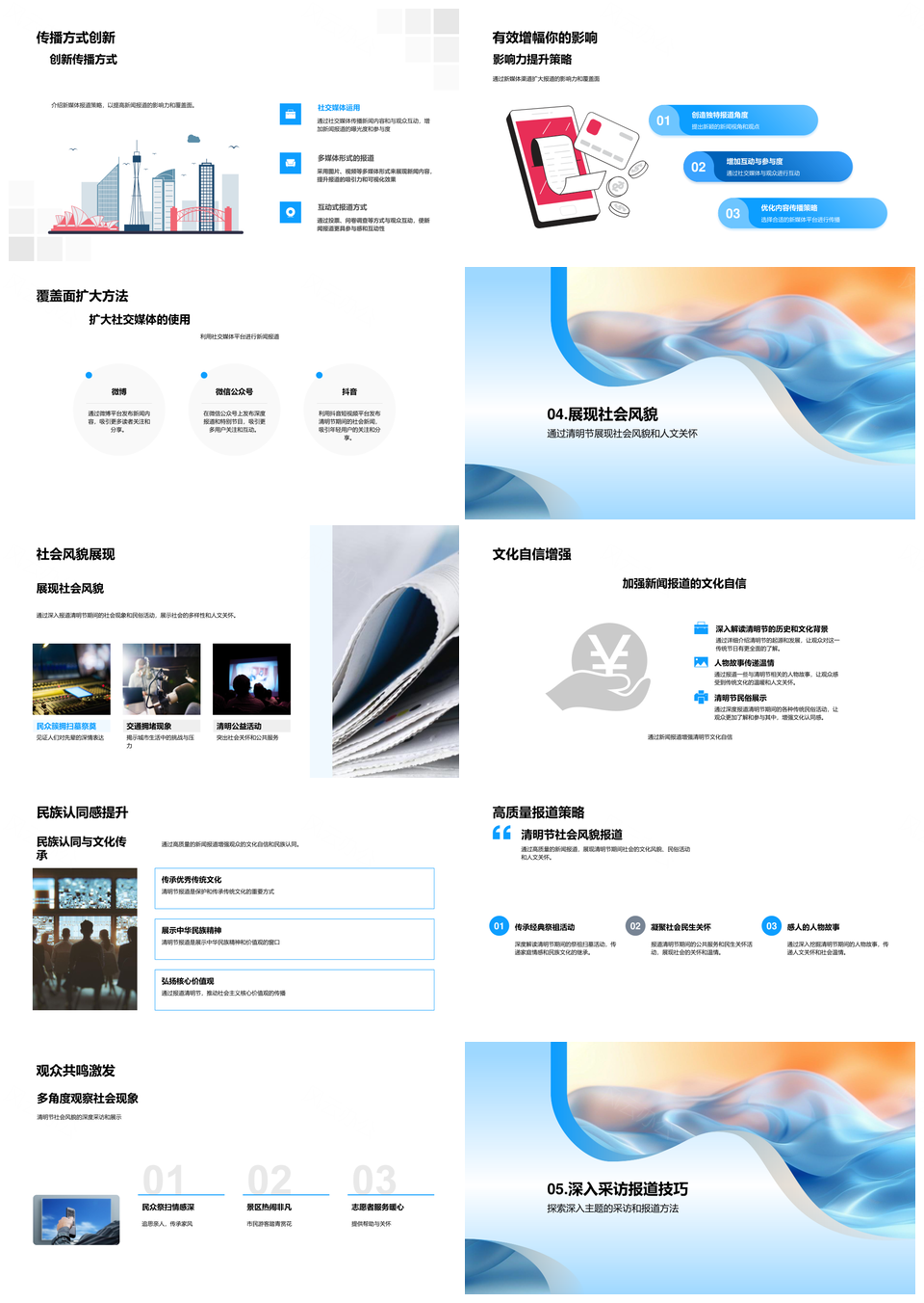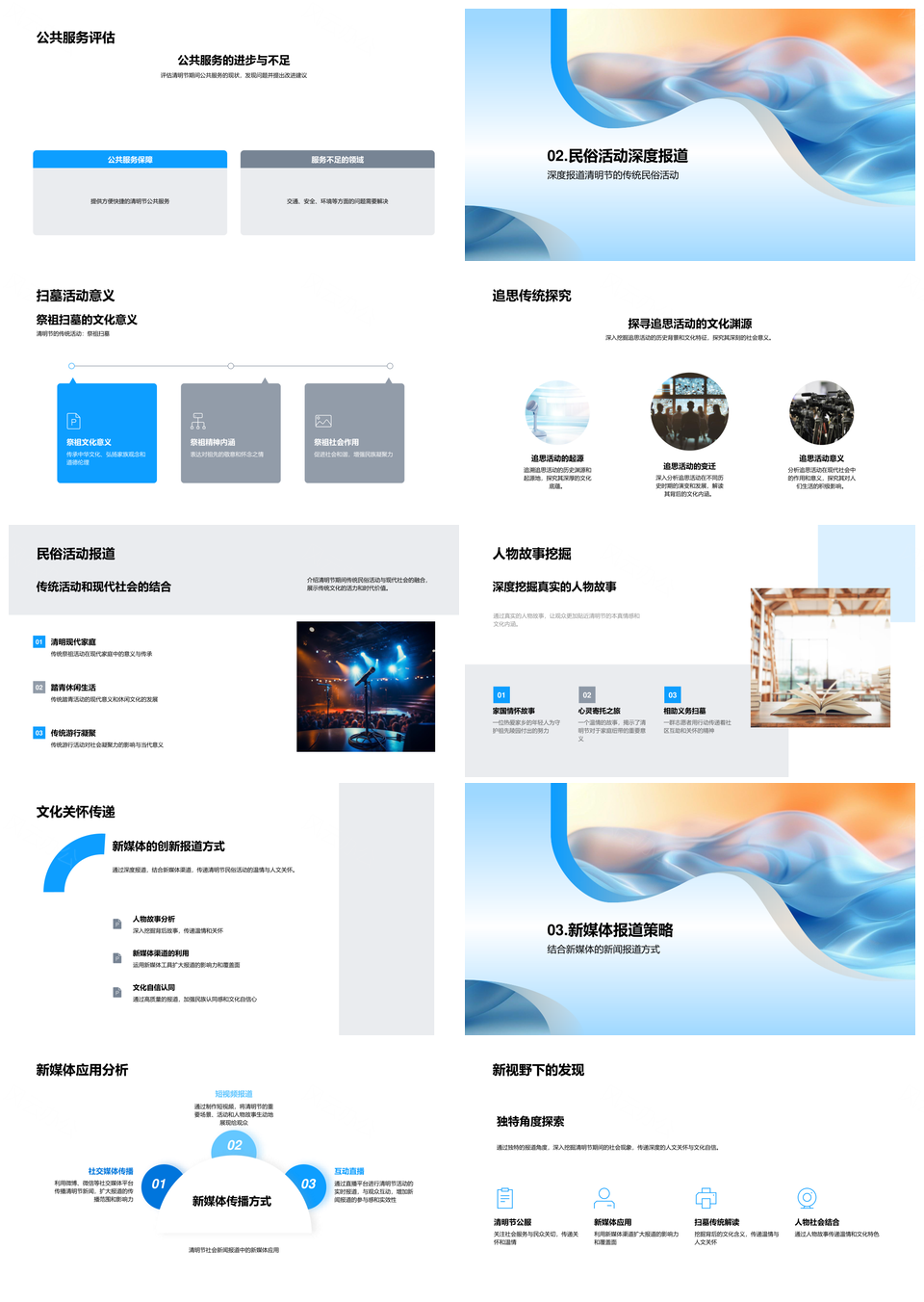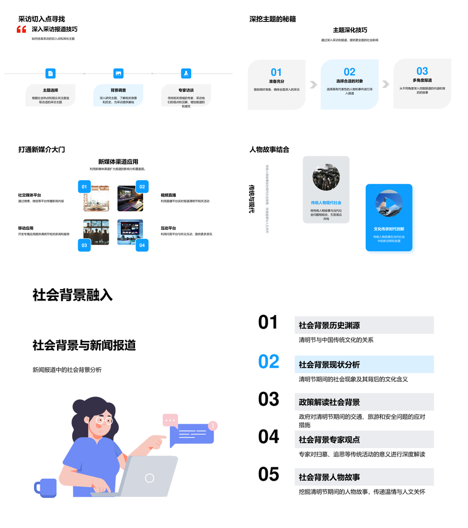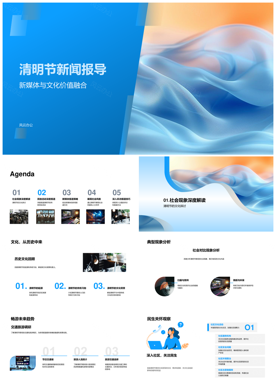 这是一张清明新媒体报道扫墓追思民俗文化社会新闻PPT模板,包含清明、新媒体、报道、扫墓、追思、民俗、文化、社会、新闻等主题内容,也可用作清明新媒体报道扫墓追思、新媒体报道扫墓追思民俗、报道扫墓追思民俗文化、扫墓追思民俗文化社会、清明新媒体报道扫墓、新媒体报道扫墓追思、报道扫墓追思民俗、扫墓追思民俗文化、追思民俗文化社会新闻、清明报道扫墓追思、新媒体扫墓追思民俗、报道民俗文化社会新闻、清明追思民俗文化、扫墓民俗文化社会、新媒体报道民俗文化等PPT场景使用。 风云办公提供的清明新媒体报道扫墓追思民俗文化社会新闻PPT模板,下载格式为pptx,一共33页,作品中文字及图均可以修改和编辑,图片更改请在作品中右键图片并更换,文字修改请直接点击文字进行修改。