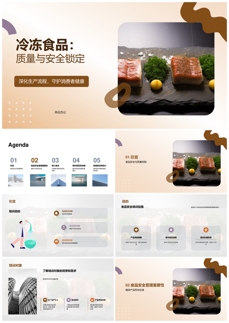 风云办公提供的速冻食品质量安全管控与生产操作规范PPT模板,下载格式为pptx,一共23页,作品中文字及图均可以修改和编辑,图片更改请在作品中右键图片并更换,文字修改请直接点击文字进行修改。