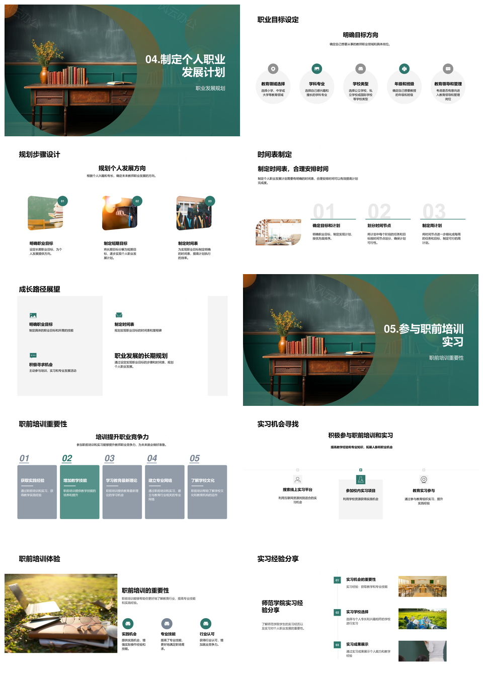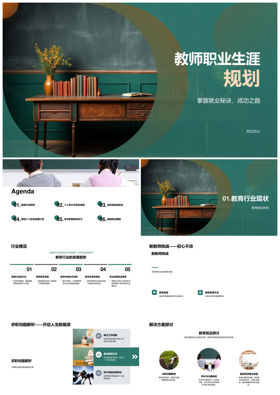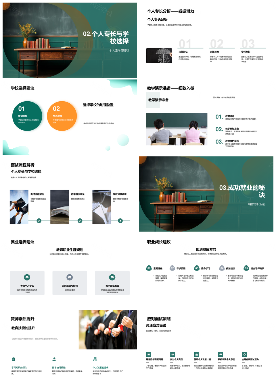 风云办公提供的教师职业规划求职指导与教育专长发展PPT模板,下载格式为pptx,一共33页,作品中文字及图均可以修改和编辑,图片更改请在作品中右键图片并更换,文字修改请直接点击文字进行修改。