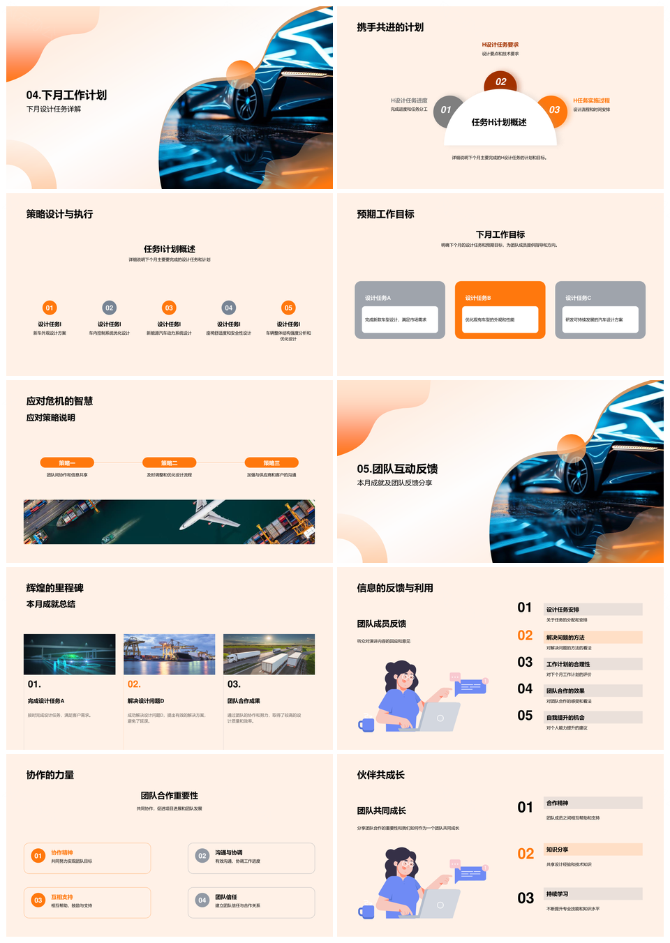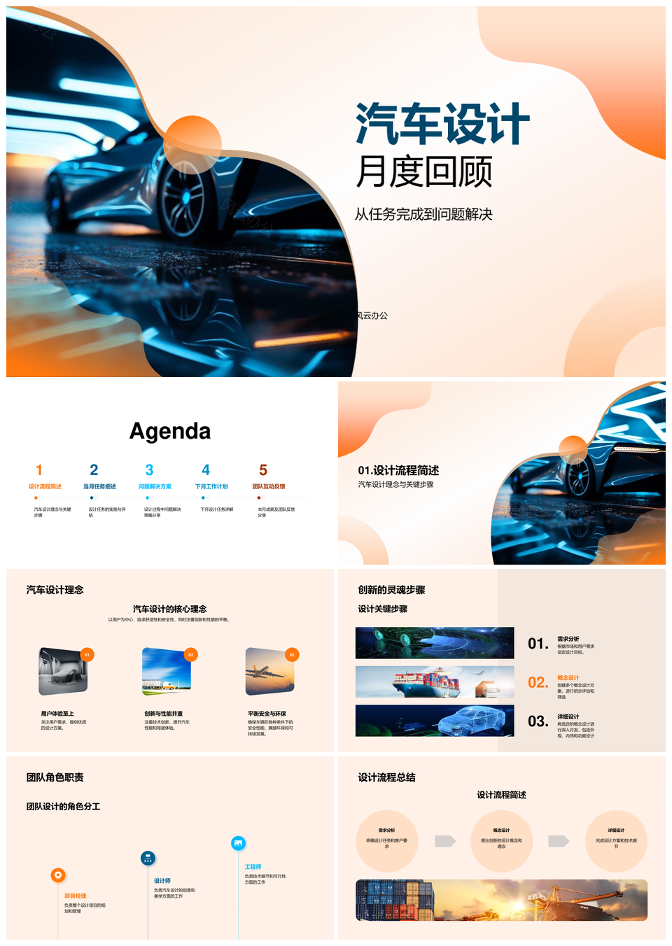 风云办公提供的汽车设计团队月度任务完成与问题解决PPT模板,下载格式为pptx,一共28页,作品中文字及图均可以修改和编辑,图片更改请在作品中右键图片并更换,文字修改请直接点击文字进行修改。