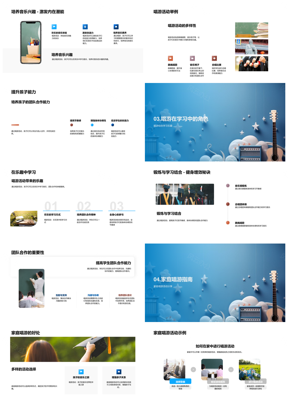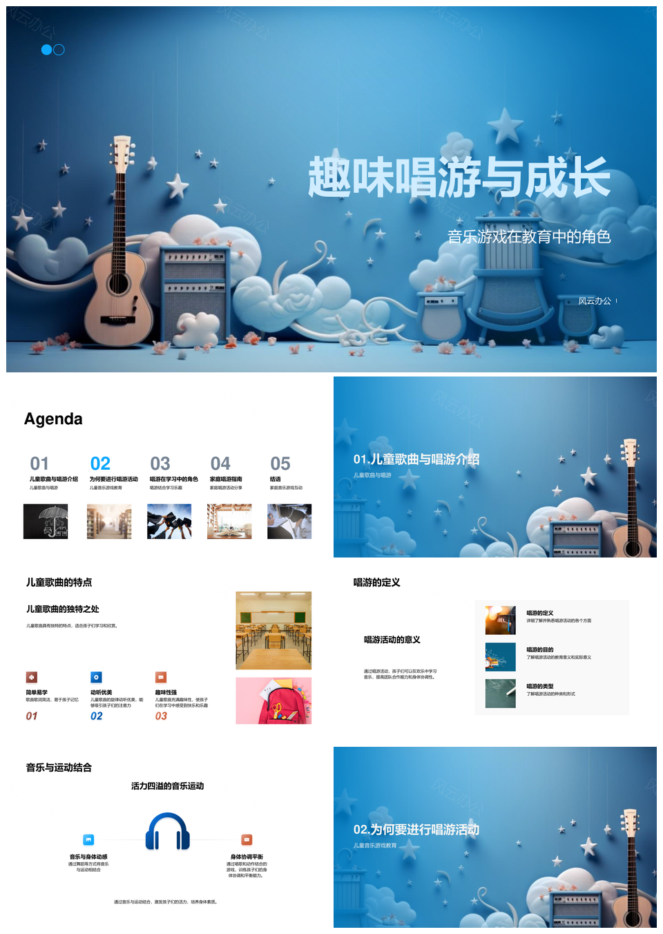 这是一张趣味唱游乐动协作助成长PPT模板,包含趣味唱游、乐动、协作、助成长等主题内容,也可用作趣味唱游乐动协作、唱游乐动协作助成长、趣味唱游乐动、唱游乐动协作、乐动协作助成长、趣味唱游、唱游乐动、乐动协作、协作助成长、唱游协作、唱游助成长、乐动助成长、趣味乐动、趣味助成长、协作助成长等PPT场景使用。 风云办公提供的趣味唱游乐动协作助成长PPT模板,下载格式为pptx,一共23页,作品中文字及图均可以修改和编辑,图片更改请在作品中右键图片并更换,文字修改请直接点击文字进行修改。