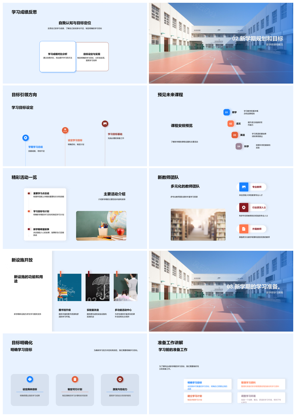 新学期目标计划课程新教师设施总结大楼PPT模板推荐