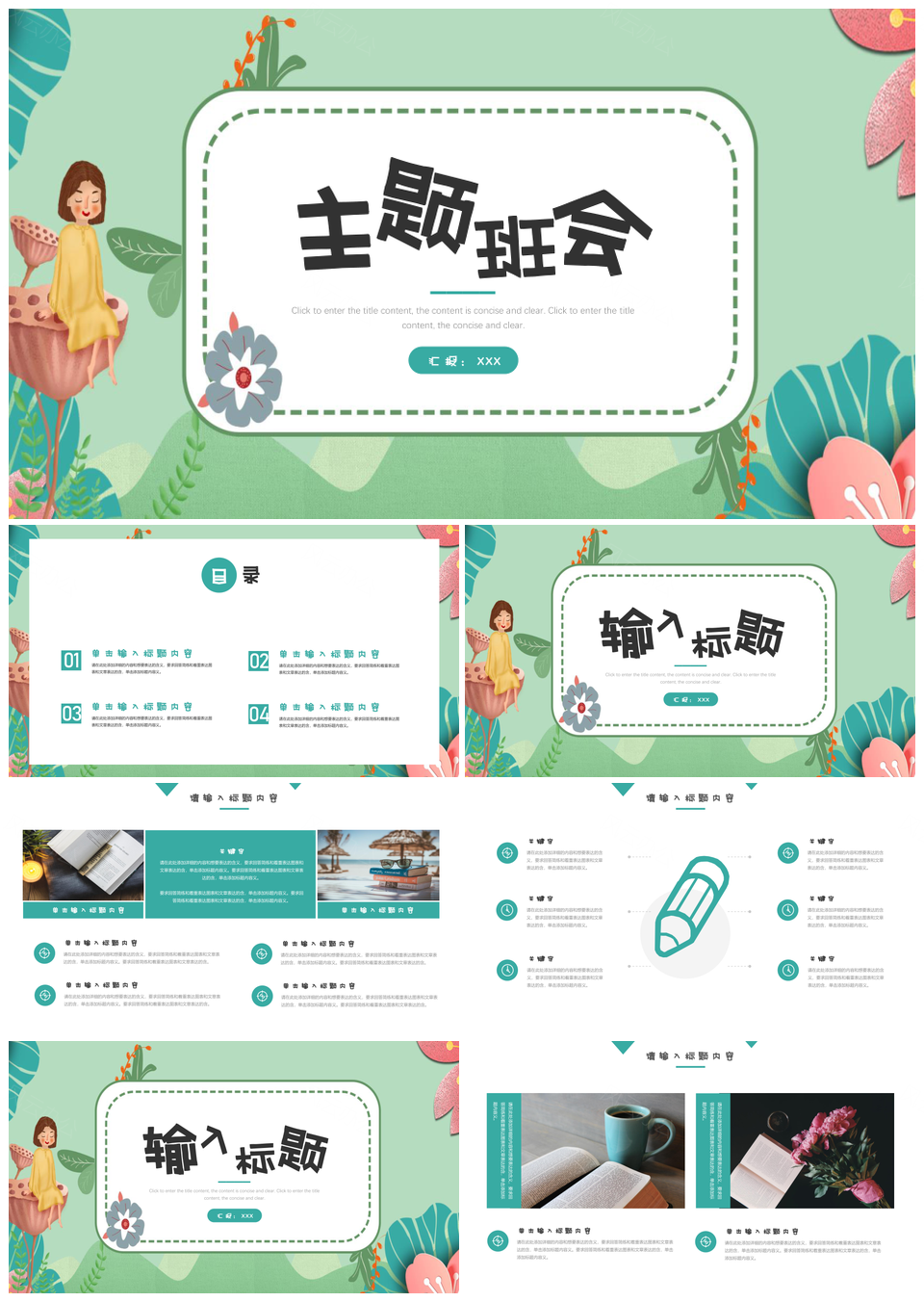 绿色教学课件小清新主题班会教师说课教案PPT模板