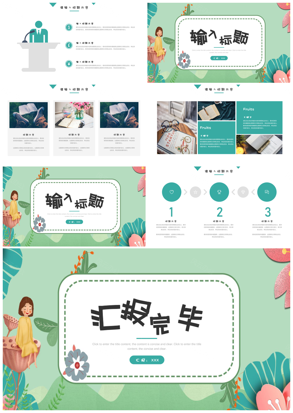 绿色小清新水彩植物花卉卡通主题班会PPT模板