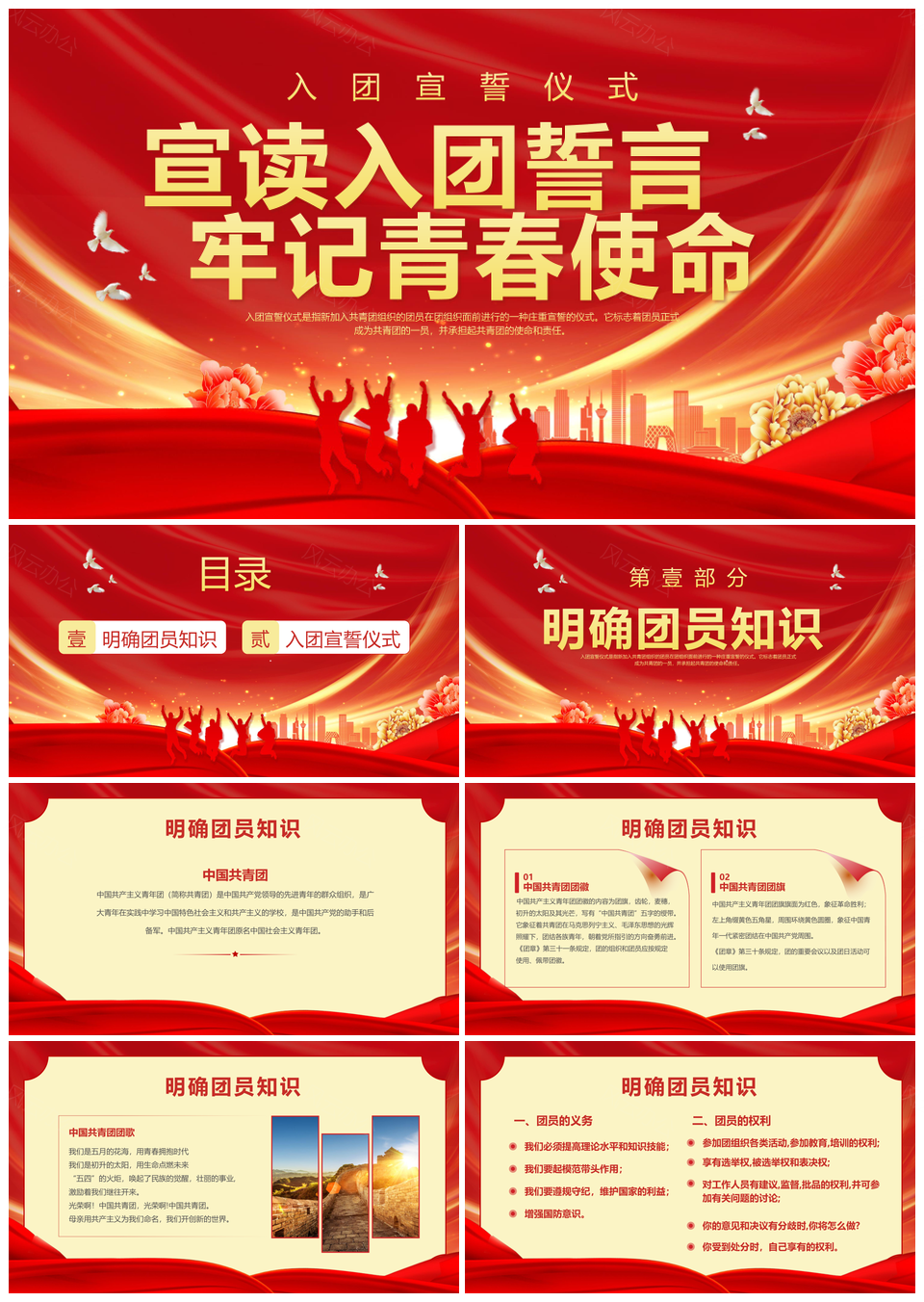 这是一张红色党政风共青团入团宣誓仪式党课PPT模板,包含党政风、共青团、入团、宣誓仪式、党课等主题内容,也可用作红色党政风共青团入团宣誓、党政风共青团入团宣誓仪式、共青团入团宣誓仪式党课、红色党政风共青团入团、党政风共青团入团宣誓、共青团入团宣誓仪式、入团宣誓仪式党课、红色党政风共青团、党政风共青团入团、共青团入团宣誓、入团宣誓仪式、宣誓仪式党课、红色党政风、共青团入团、入团宣誓等PPT场景使用。