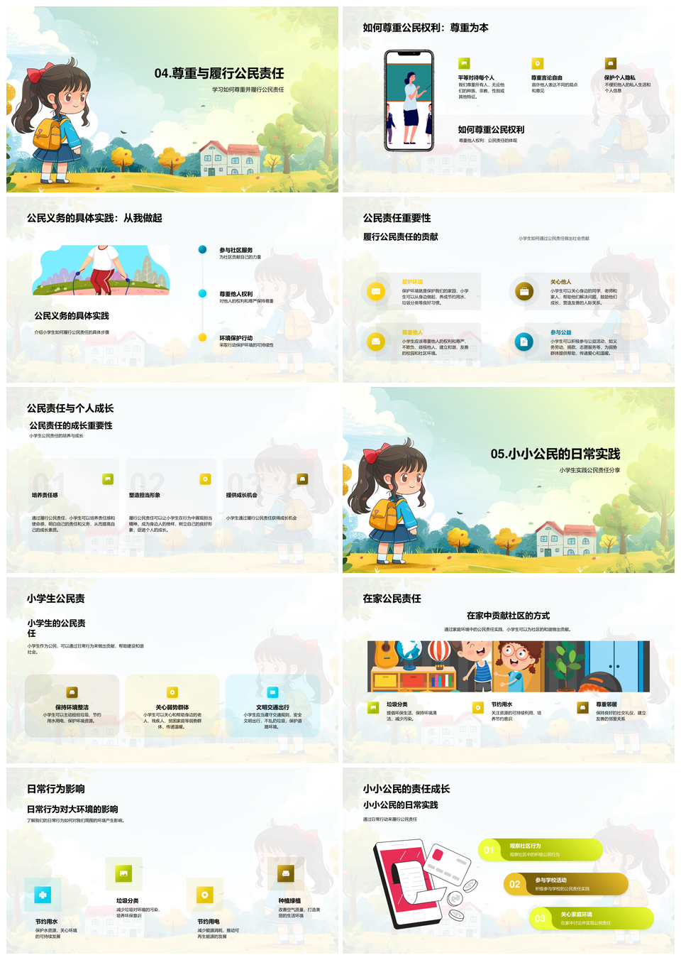 2025小学生公民权利义务社会贡献教育PPT模板推荐