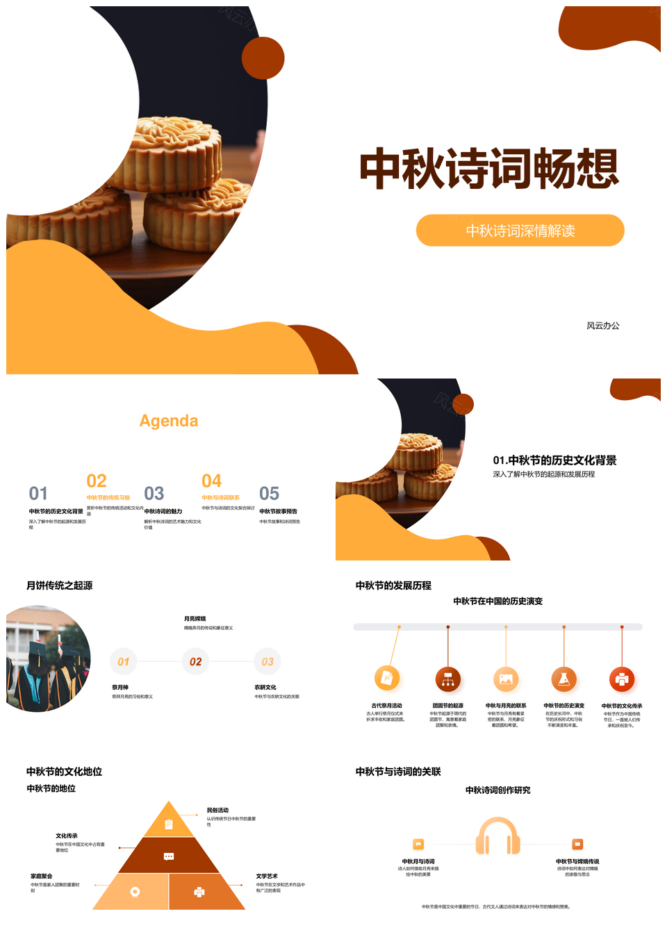 风云办公提供的中秋诗词习俗赏月吃月饼提灯笼传承PPT模板,下载格式为pptx,一共29页,作品中文字及图均可以修改和编辑,图片更改请在作品中右键图片并更换,文字修改请直接点击文字进行修改。