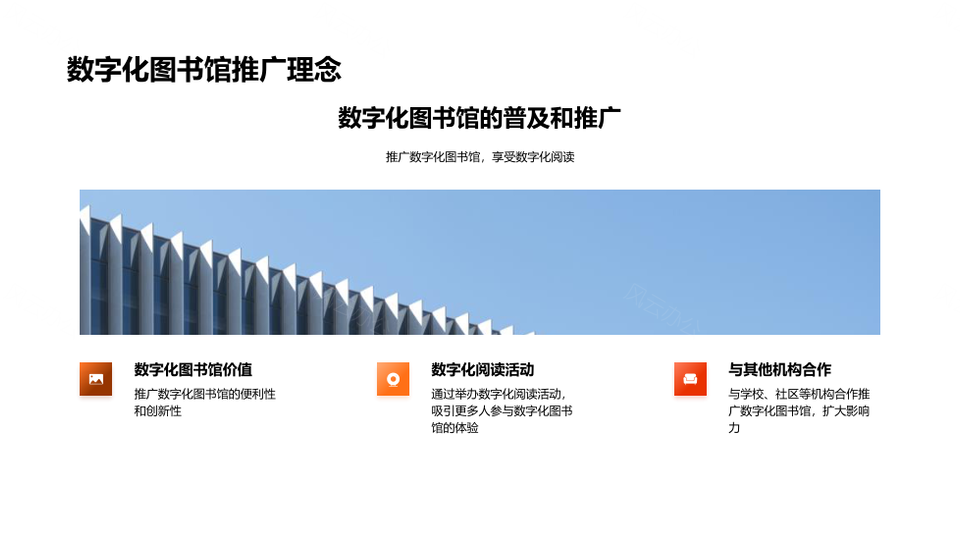 这是一张数字化图书馆未来阅读体验与数字技术学习PPT模板,包含数字化图书馆、未来、阅读体验、数字技术、学习等主题内容,也可用作数字化图书馆未来阅读体验数字技术学习、数字化图书馆未来阅读体验、未来阅读体验数字技术学习、数字化图书馆数字技术学习、图书馆未来阅读体验数字技术、未来阅读体验数字技术、数字化图书馆阅读体验、数字技术学习未来阅读、图书馆数字技术学习、数字化图书馆未来、数字技术学习阅读体验、未来数字技术学习、数字化数字技术学习、阅读体验数字技术、图书馆未来阅读等PPT场景使用。 风云办公提供的数字化图书馆未来阅读体验与数字技术学习PPT模板,下载格式为pptx,一共19页,作品中文字及图均可以修改和编辑,图片更改请在作品中右键图片并更换,文字修改请直接点击文字进行修改。