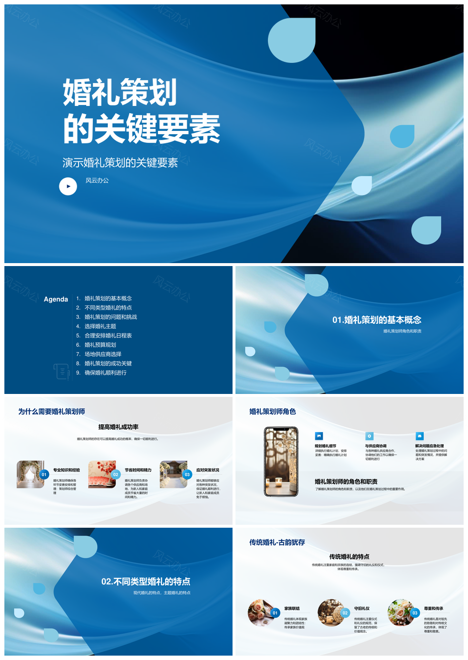 风云办公提供的婚礼策划关键要素PPT模板,下载格式为pptx,一共26页,作品中文字及图均可以修改和编辑,图片更改请在作品中右键图片并更换,文字修改请直接点击文字进行修改。