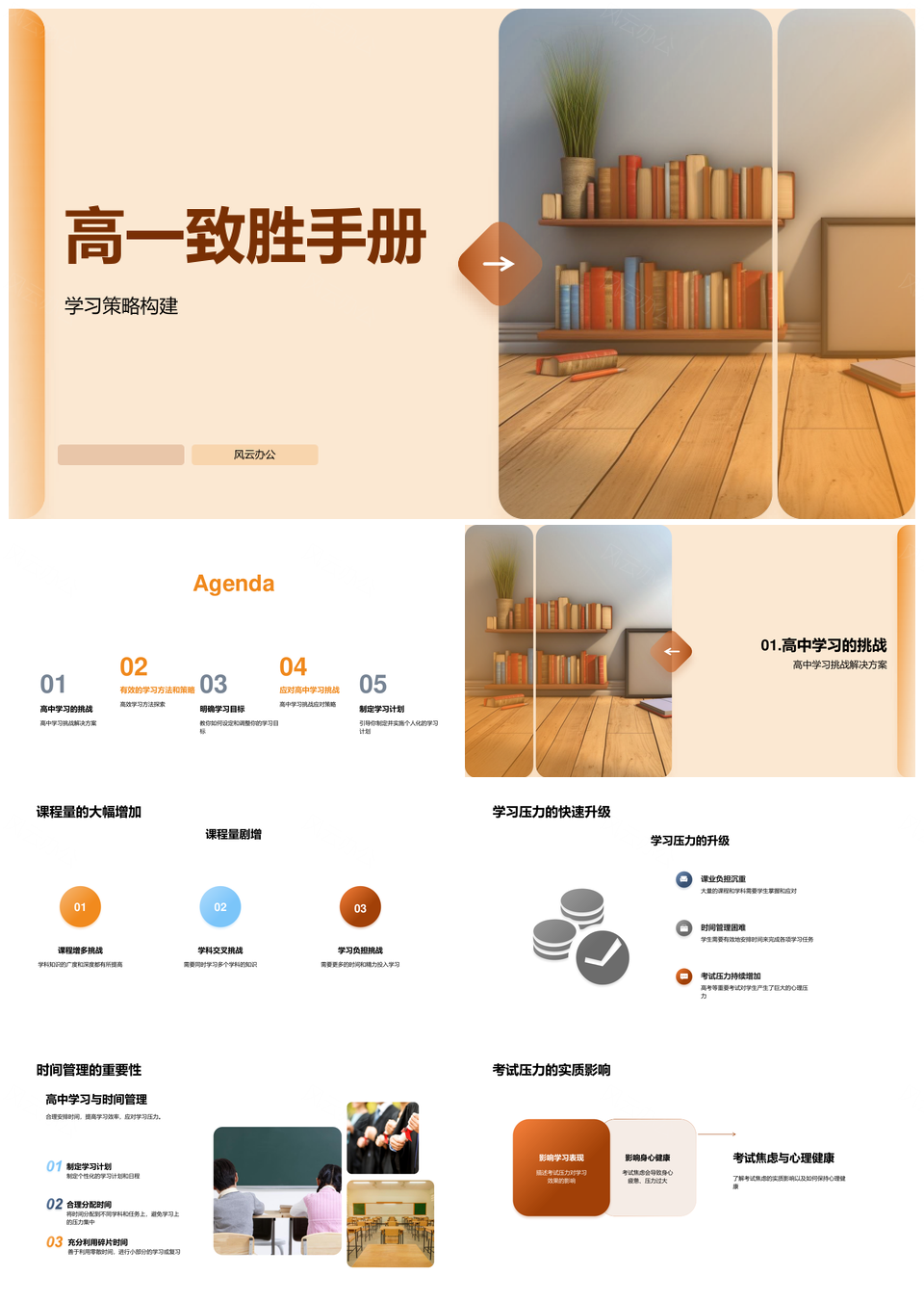 风云办公提供的高一策略课程压力时间多元学法教科书PPT模板,下载格式为pptx,一共25页,作品中文字及图均可以修改和编辑,图片更改请在作品中右键图片并更换,文字修改请直接点击文字进行修改。