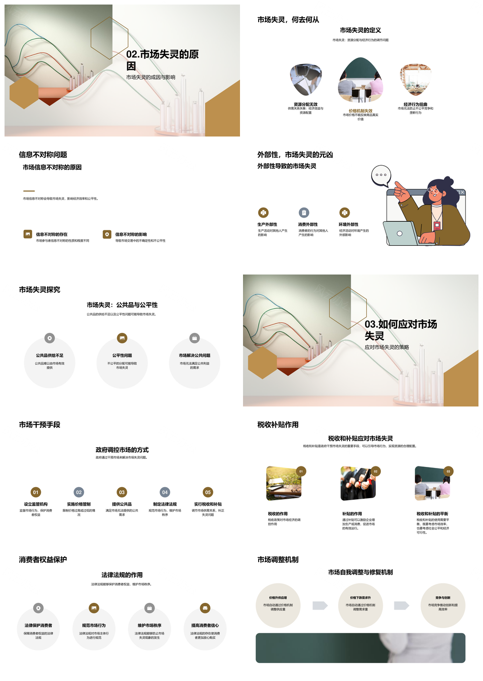经济学市场运作失灵与供需价格机制图解PPT模板推荐