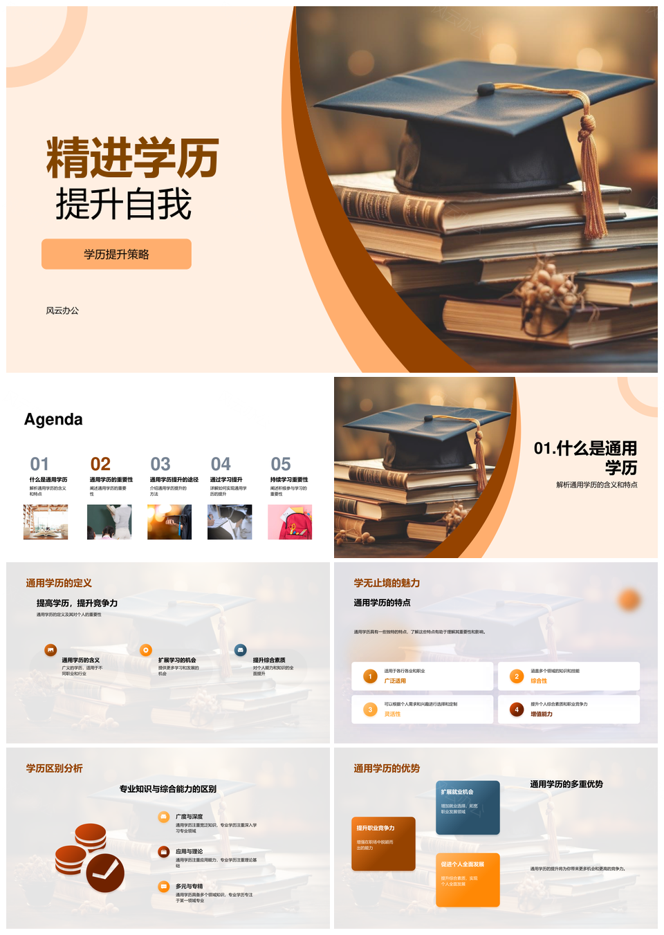风云办公提供的精进通用专业学历提升自我竞争力PPT模板,下载格式为pptx,一共33页,作品中文字及图均可以修改和编辑,图片更改请在作品中右键图片并更换,文字修改请直接点击文字进行修改。