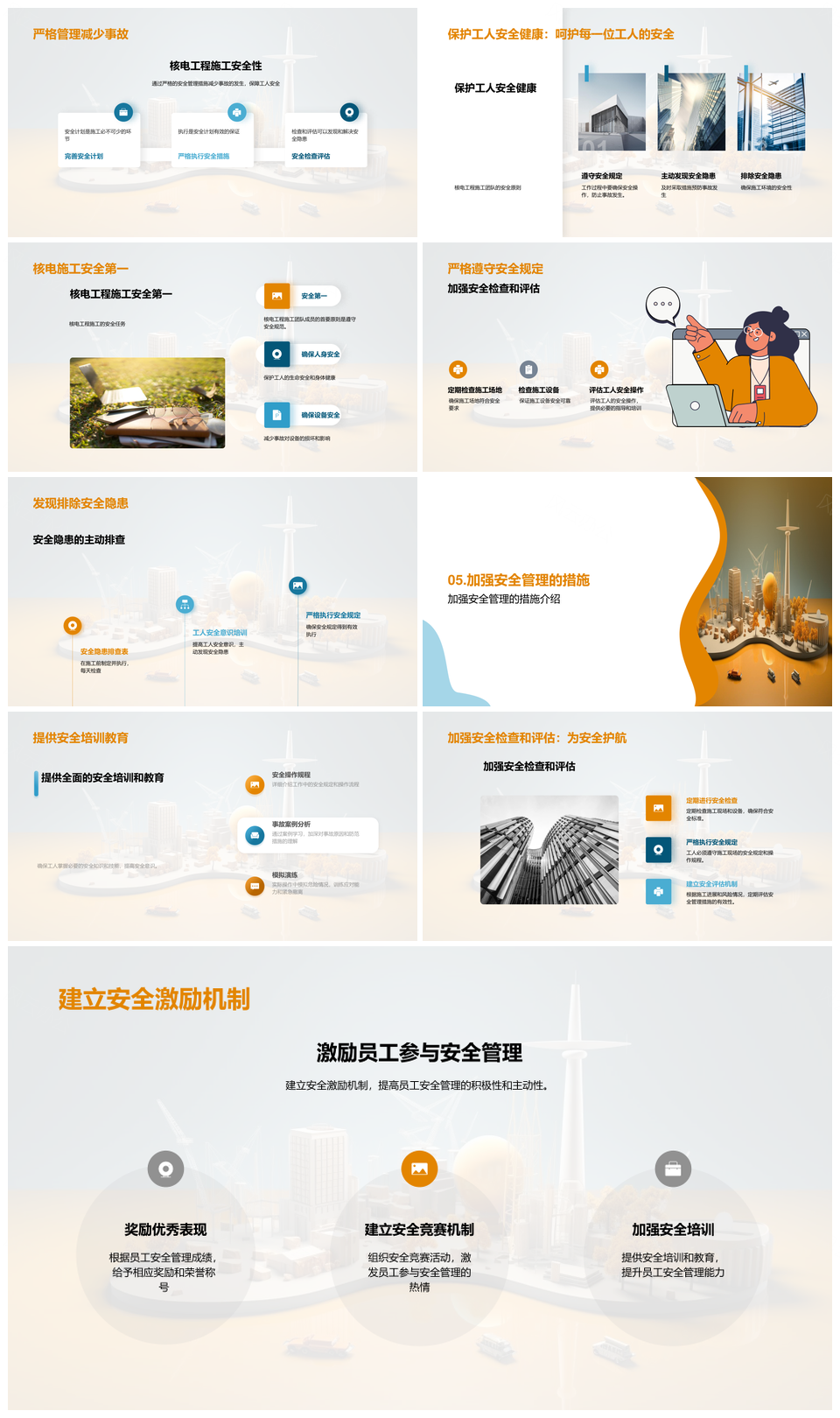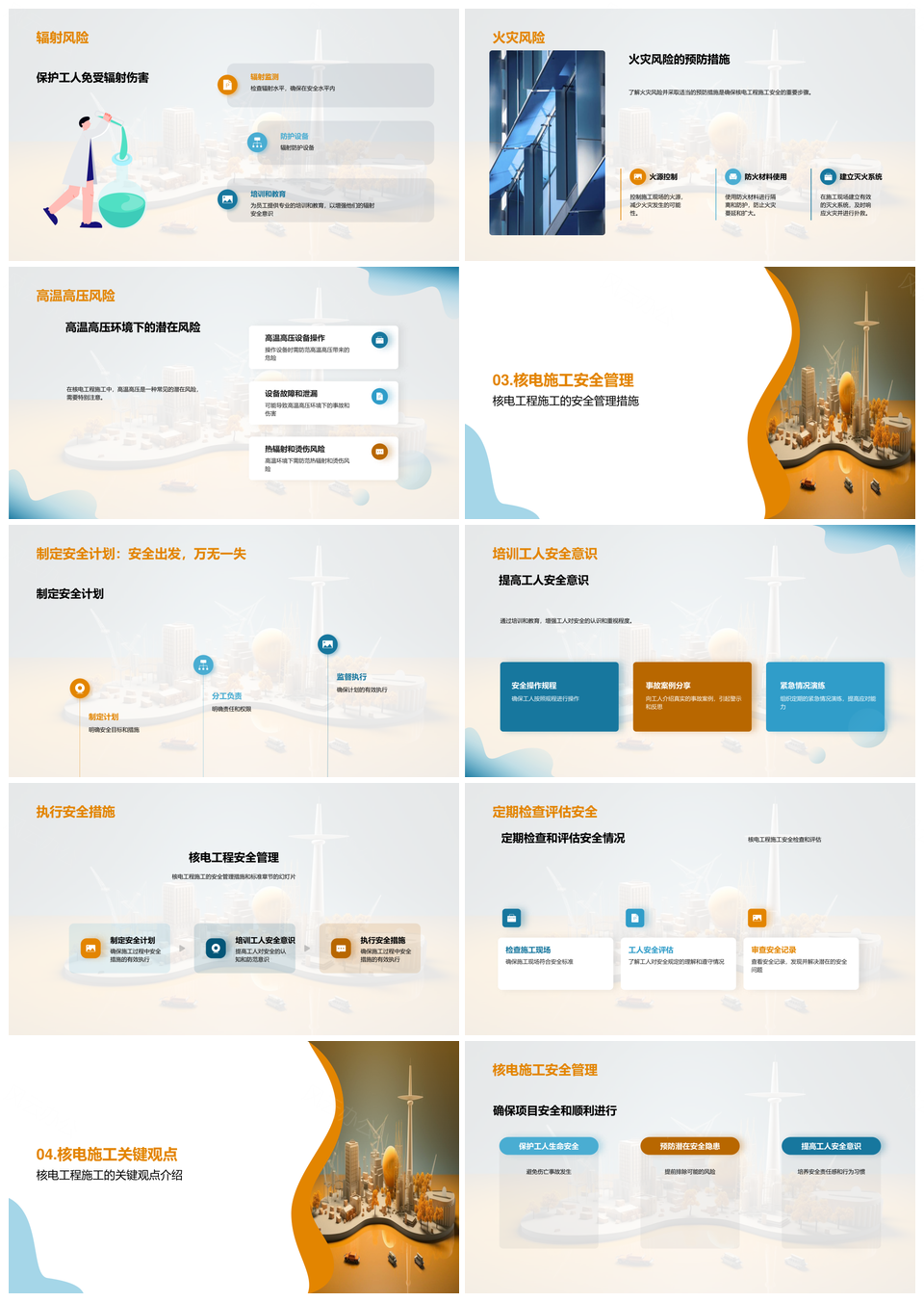 这是一张核电工程施工安全管理团队流程辐射火灾风险PPT模板,包含核电工程、施工安全、管理团队、流程、辐射、火灾、风险等主题内容,也可用作核电工程施工安全管理团队流程、核电工程施工安全管理、核电工程安全团队流程、施工安全管理团队流程、安全管理团队流程辐射、管理团队流程辐射火灾、团队流程辐射火灾风险、核电工程施工安全、核电工程管理团队、施工安全流程辐射、安全管理团队流程、团队流程火灾风险、工程安全团队流程、施工管理流程辐射、管理流程辐射火灾等PPT场景使用。 风云办公提供的核电工程施工安全管理团队流程辐射火灾风险PPT模板,下载格式为pptx,一共27页,作品中文字及图均可以修改和编辑,图片更改请在作品中右键图片并更换,文字修改请直接点击文字进行修改。