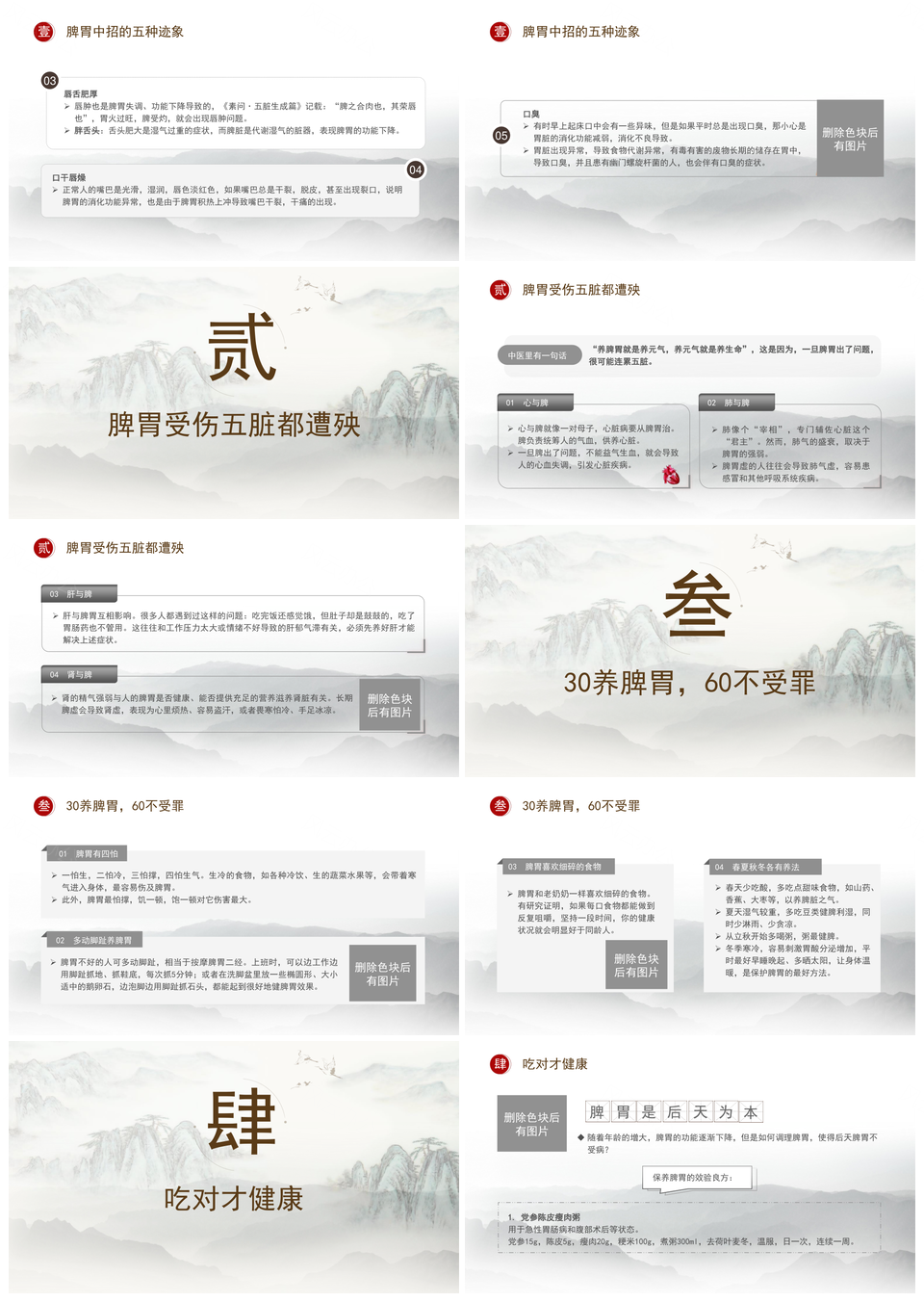 这是一张中医脾胃养生知识讲座科普PPT模板,包含中医、脾胃、养生、知识、讲座、科普等主题内容,也可用作中医脾胃养生知识讲座科普、中医脾胃养生知识、脾胃养生知识讲座、养生知识讲座科普、中医脾胃养生、脾胃养生知识、养生知识讲座、知识讲座科普、中医脾胃、脾胃养生、养生知识、知识讲座、讲座科普、中医养生、脾胃知识等PPT场景使用。