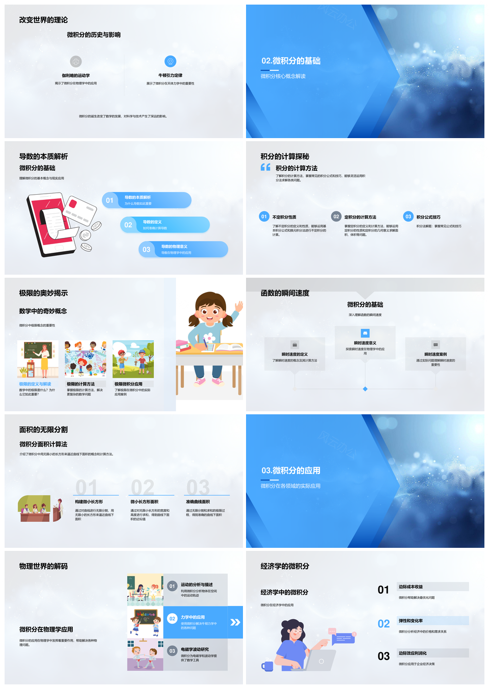 这是一张微积分导数积分极限原理及物理经济生物应用PPT模板,包含微积分、导数、积分、极限、原理、物理、经济、生物、应用等主题内容,也可用作微积分导数积分极限、导数积分极限原理、积分极限原理物理、极限原理物理经济、原理物理经济生物、物理经济生物应用、微积分导数积分、导数积分极限、积分极限原理、极限原理物理、原理物理经济、物理经济生物、经济生物应用、微积分导数、导数积分、积分极限等PPT场景使用。 风云办公提供的微积分导数积分极限原理及物理经济生物应用PPT模板,下载格式为pptx,一共33页,作品中文字及图均可以修改和编辑,图片更改请在作品中右键图片并更换,文字修改请直接点击文字进行修改。