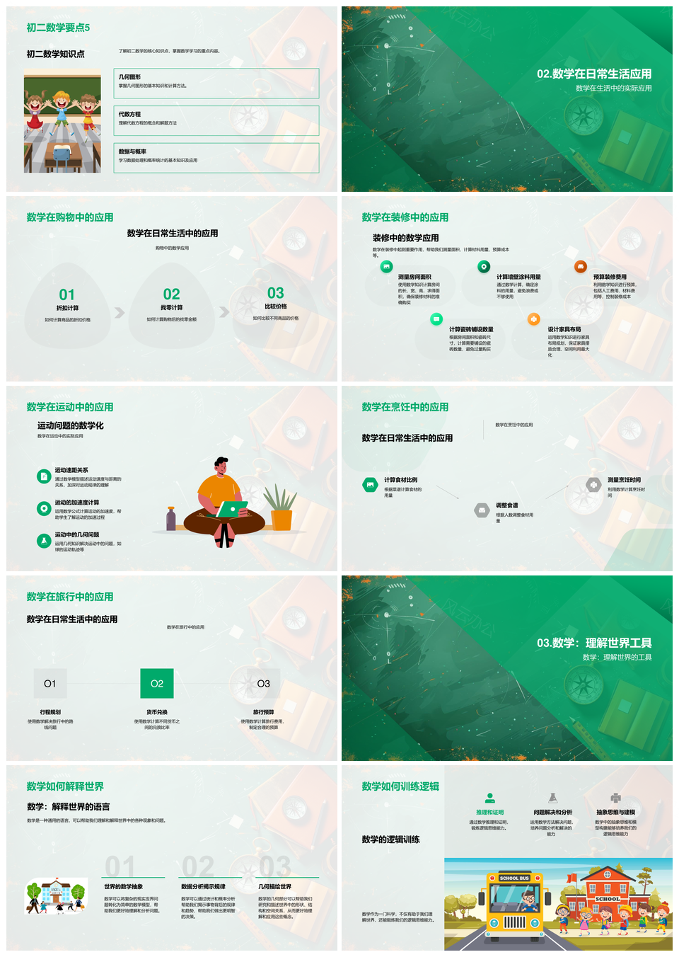 初二数学知识理解掌握学习重要性日常应用PPT模板推荐