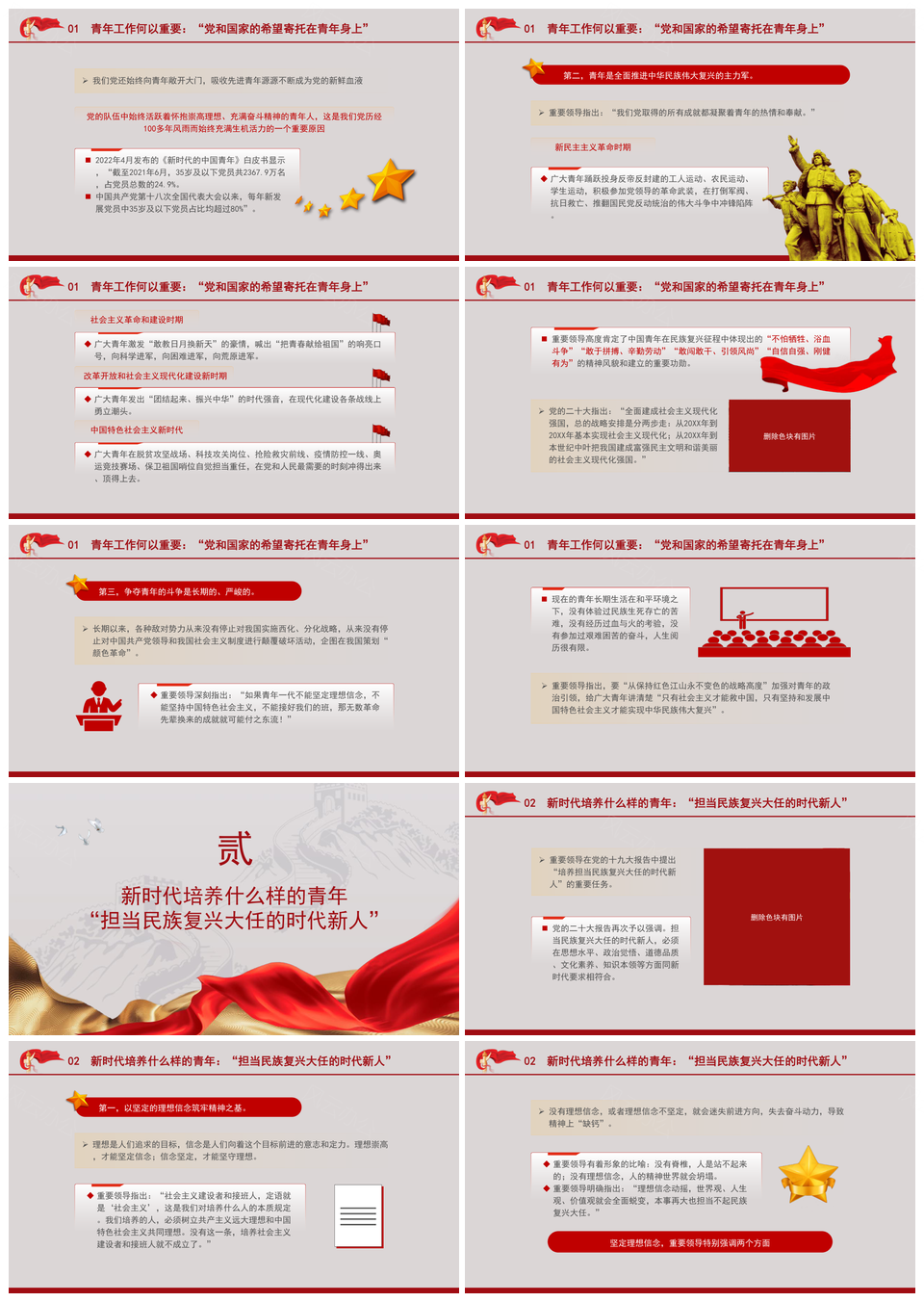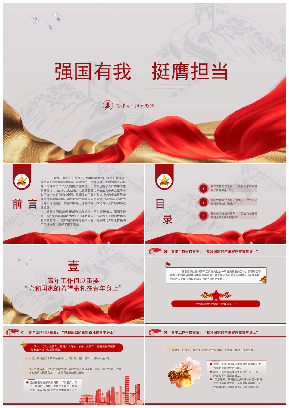 五四青年节强国有我青年工作论述主题团课PPT模板推荐