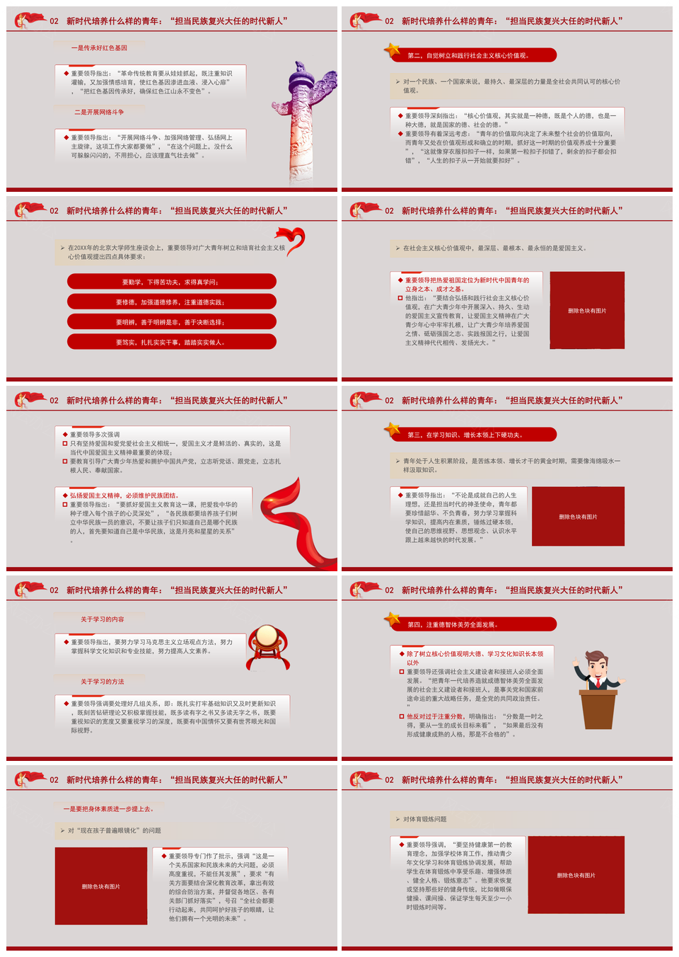 这是一张五四青年节强国有我青年工作论述主题团课PPT模板,包含五四青年节、强国有我、青年工作、论述、主题团课等主题内容,也可用作五四青年节强国有我青年工作、强国有我青年工作论述、青年工作论述主题团课、五四青年节强国有我、强国有我青年、青年工作论述主题、工作论述主题团课、五四青年节青年工作论述、强国有我主题团课、五四青年节论述主题、强国有我青年工作、五四青年节强国有我青年、青年工作论述、五四青年节主题团课、强国有我青年论述等PPT场景使用。 风云办公提供的五四青年节强国有我青年工作论述主题团课PPT模板,下载格式为pptx,一共52页,作品中文字及图均可以修改和编辑,图片更改请在作品中右键图片并更换,文字修改请直接点击文字进行修改。