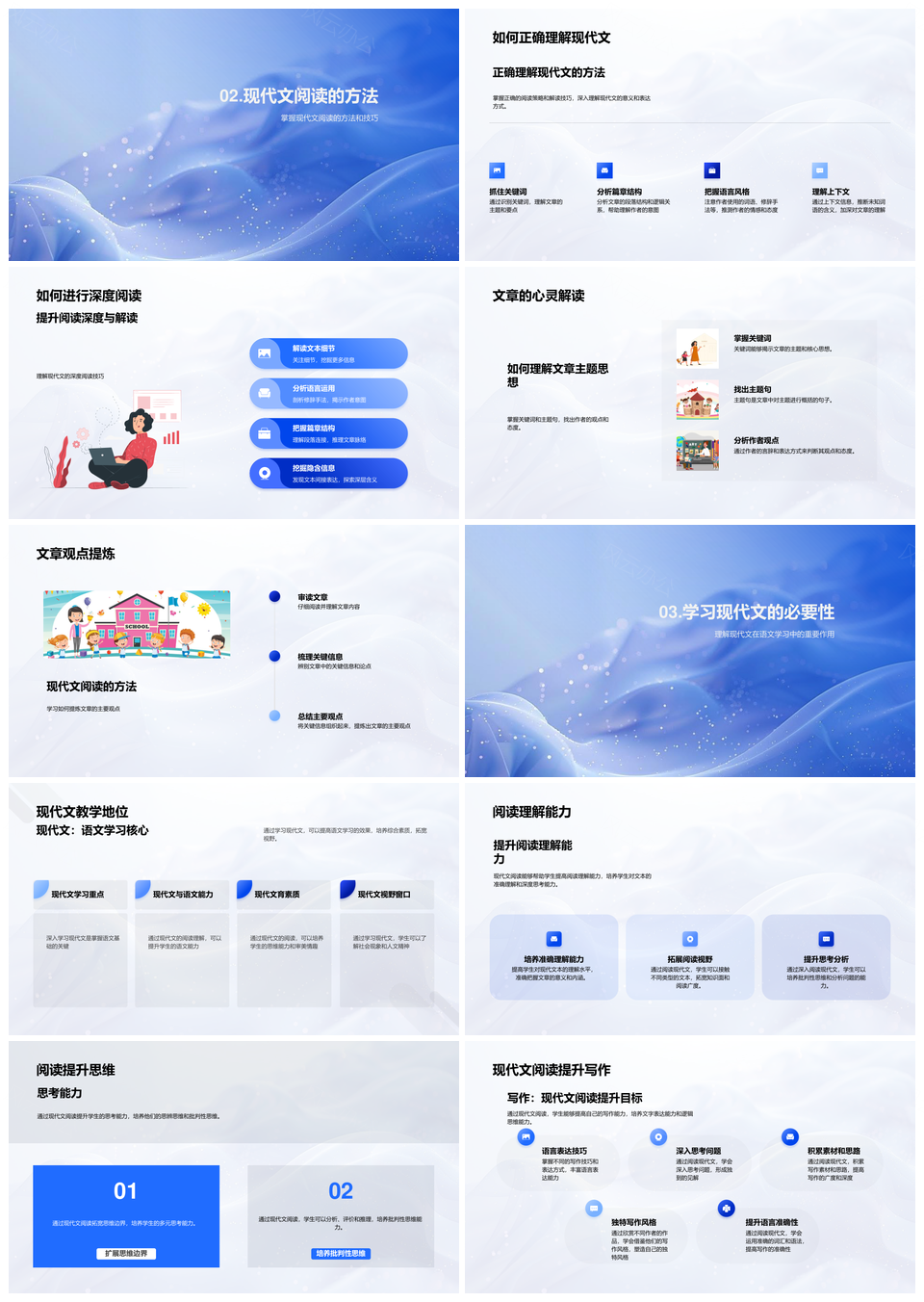 风云办公提供的高中现代文深度阅读理解思考教学方法PPT模板,下载格式为pptx,一共28页,作品中文字及图均可以修改和编辑,图片更改请在作品中右键图片并更换,文字修改请直接点击文字进行修改。
