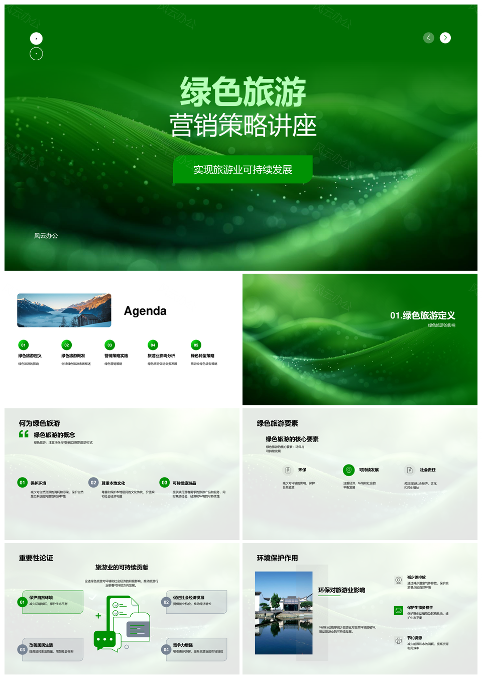 这是一张2025绿色旅游可持续发展营销策略与环保旅游产品市场趋势PPT模板,包含2025、绿色旅游、可持续发展、营销策略、环保旅游产品、市场趋势等主题内容,也可用作绿色旅游可持续发展营销策略环保旅游、绿色旅游可持续发展环保旅游产品市场、绿色旅游可持续发展营销策略、环保旅游产品市场趋势、可持续发展营销策略环保旅游、绿色旅游可持续发展环保旅游、营销策略环保旅游产品市场、绿色旅游环保旅游产品市场、营销策略产品市场趋势、绿色旅游可持续发展、可持续发展营销策略、绿色旅游环保旅游、营销策略环保旅游、环保旅游产品市场、绿色旅游市场趋势等PPT场景使用。 风云办公提供的2025绿色旅游可持续发展营销策略与环保旅游产品市场趋势PPT模板,下载格式为pptx,一共33页,作品中文字及图均可以修改和编辑,图片更改请在作品中右键图片并更换,文字修改请直接点击文字进行修改。