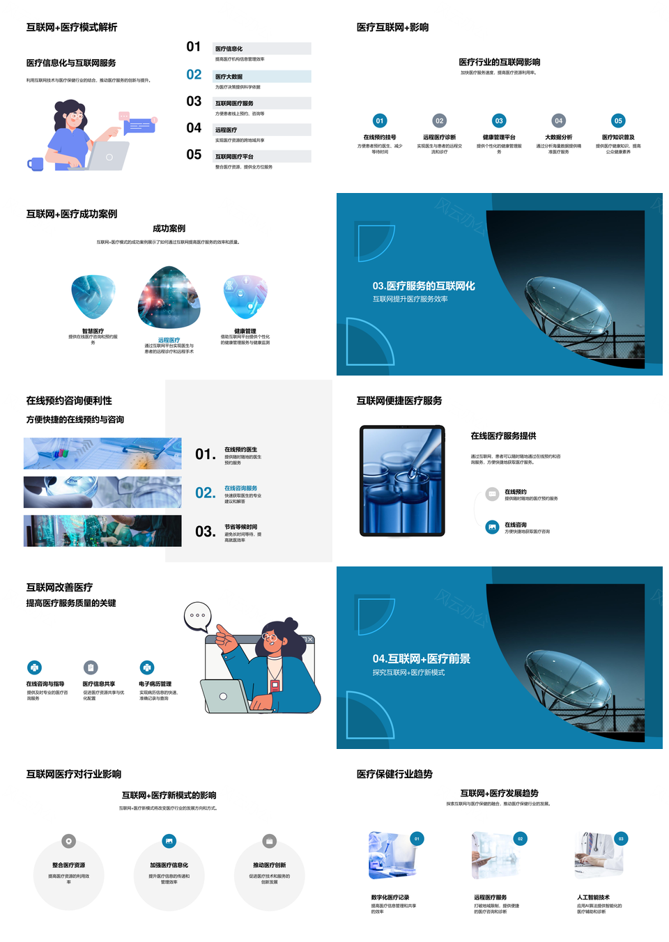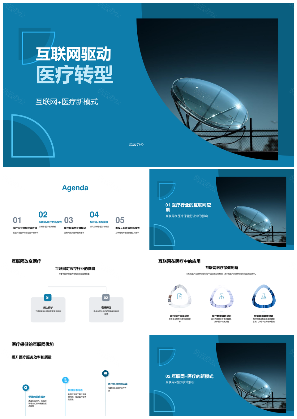 风云办公提供的互联网驱动医疗转型提升服务效率质量PPT模板,下载格式为pptx,一共23页,作品中文字及图均可以修改和编辑,图片更改请在作品中右键图片并更换,文字修改请直接点击文字进行修改。