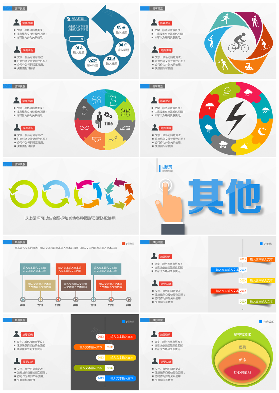 风云办公提供的简约商务递进循环关系PPT模板,下载格式为pptx,一共30页,作品中文字及图均可以修改和编辑,图片更改请在作品中右键图片并更换,文字修改请直接点击文字进行修改。